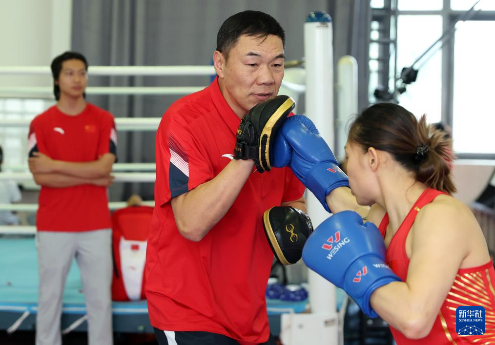 当日,中国国家拳击队在北京进行训练,备战巴黎奥运会。