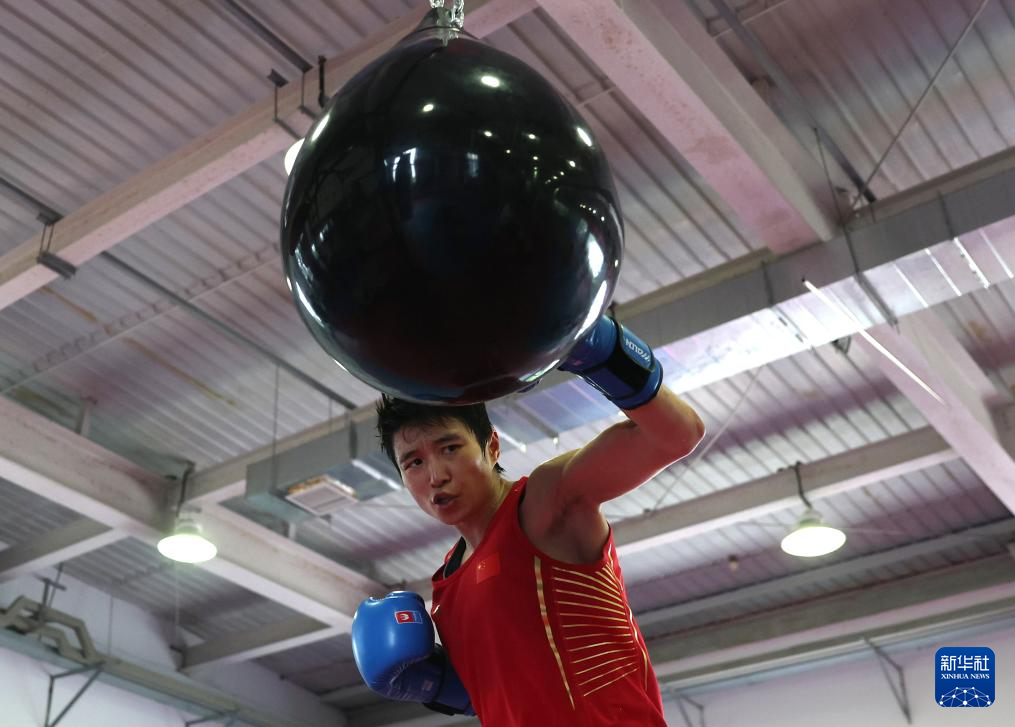 6月29日,国家拳击队队员杨文璐在实战训练后继续练习。新华社记者 贾浩成 摄