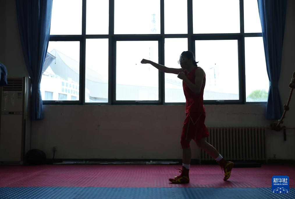 6月29日,国家拳击队队员常园在实战训练中。新华社记者 贾浩成 摄