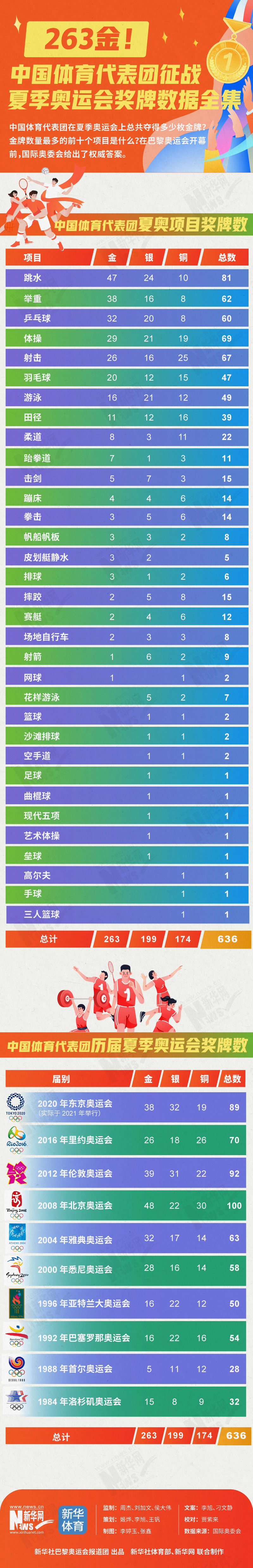 海报 | 263金!中国体育代表团征战夏季奥运会奖牌数据全集_2024巴黎奥运会_新华网