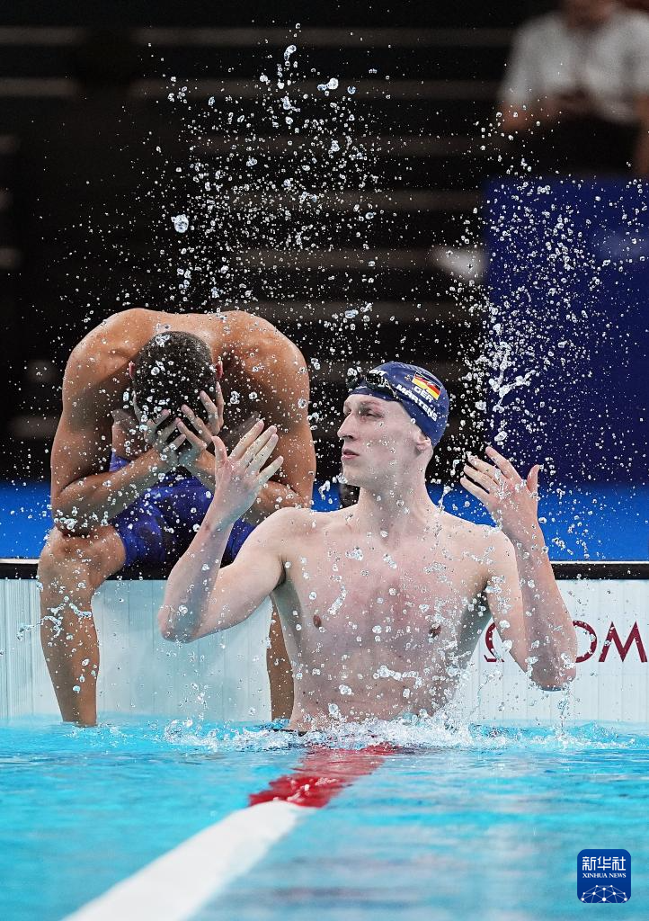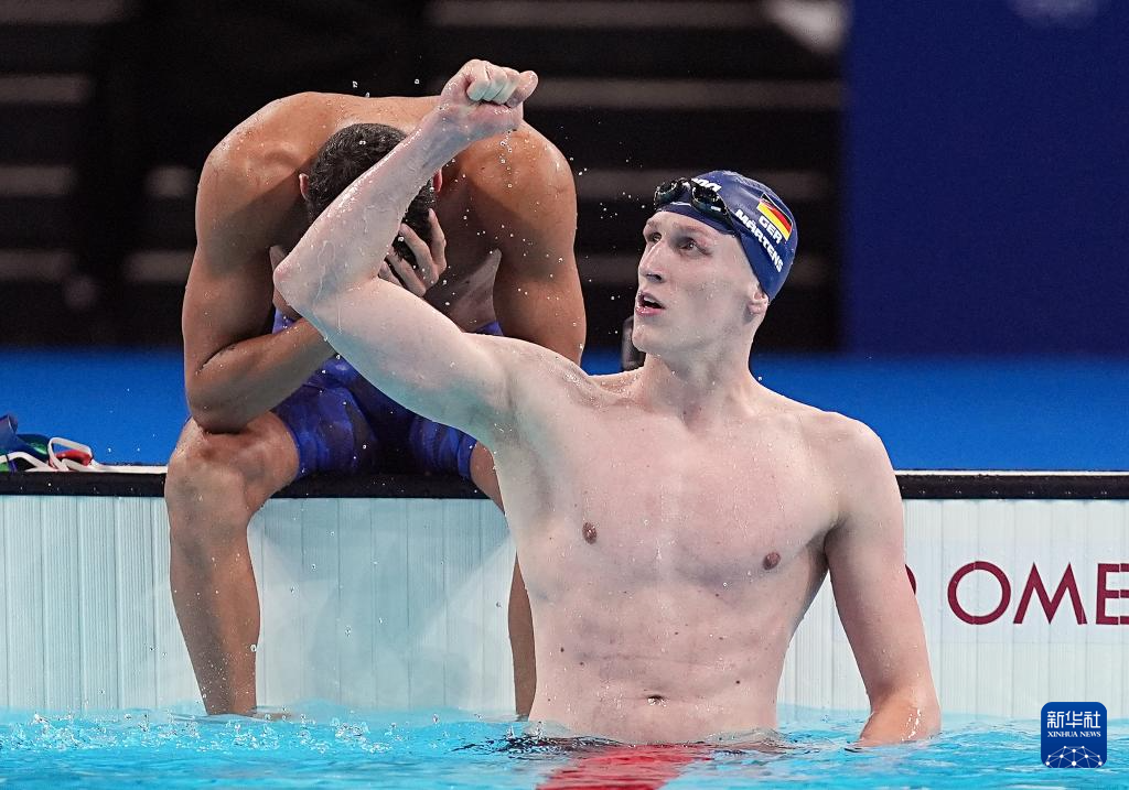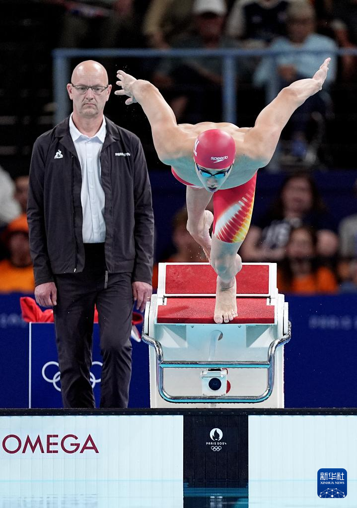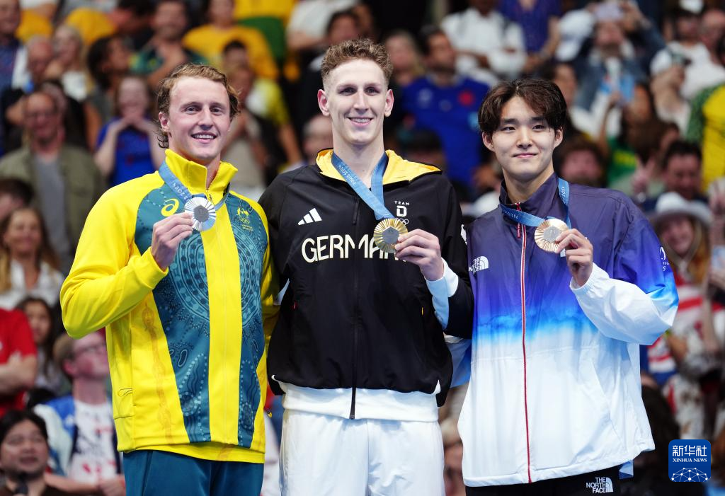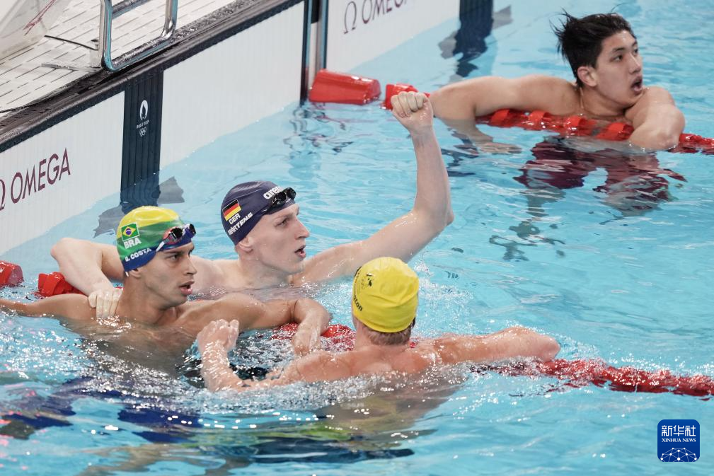 当日,巴黎奥运会游泳男子400米自由泳决赛在拉德芳斯体育馆举行。