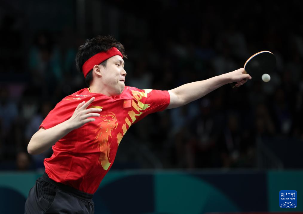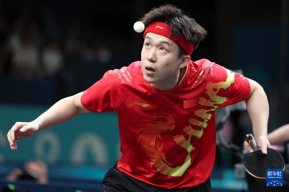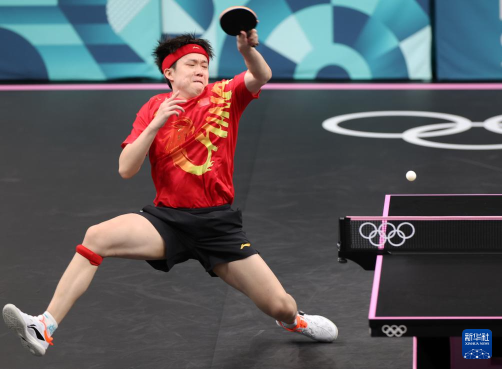 7月28日,王楚钦在比赛中回球。新华社记者 刘续 摄