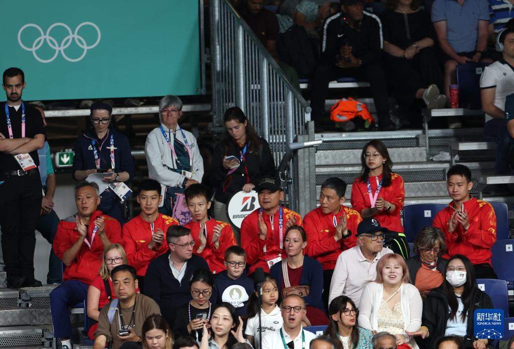 7月28日,中国乒乓球队部分成员观赛。新华社记者 王东震 摄