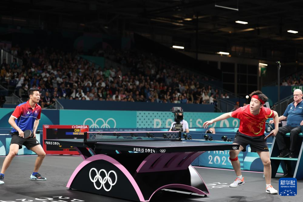 7月28日,王楚钦(右)在比赛中。新华社记者 王东震 摄