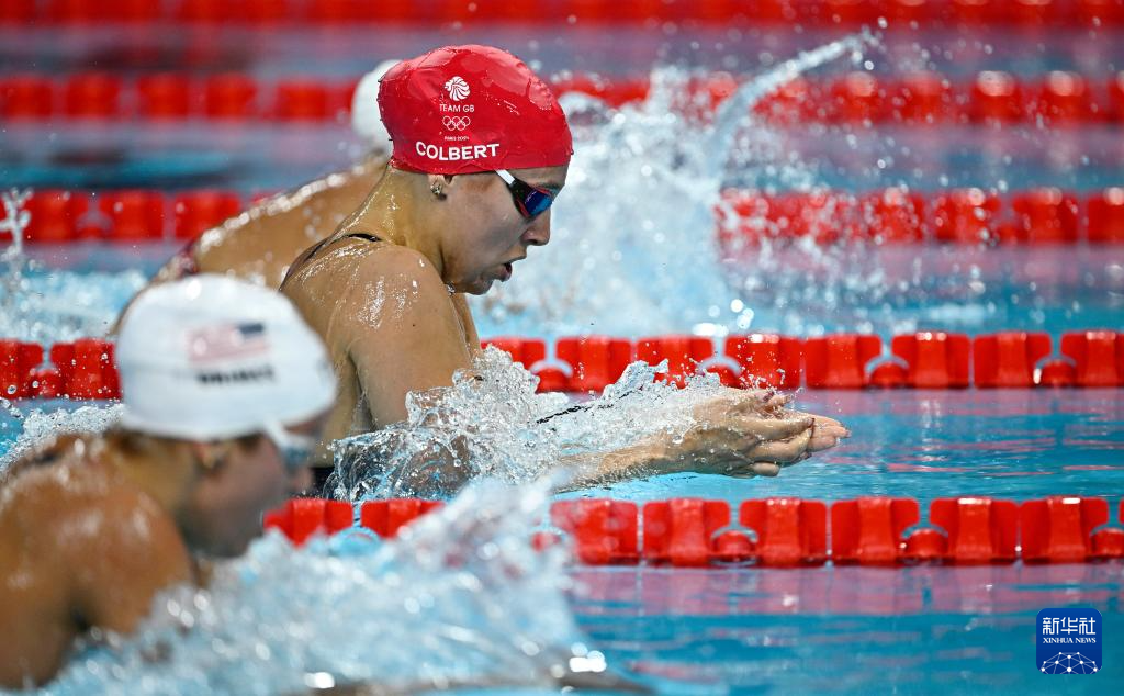 7月29日,英国选手科尔伯特(中)在比赛中。她排名第四,晋级决赛。新华社记者 王鹏 摄