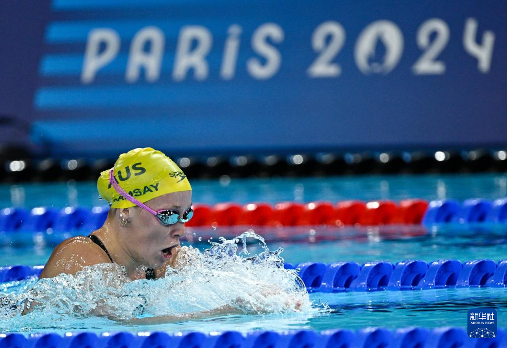 当日,巴黎奥运会游泳项目女子400米个人混合泳预赛在拉德芳斯体育馆举行。