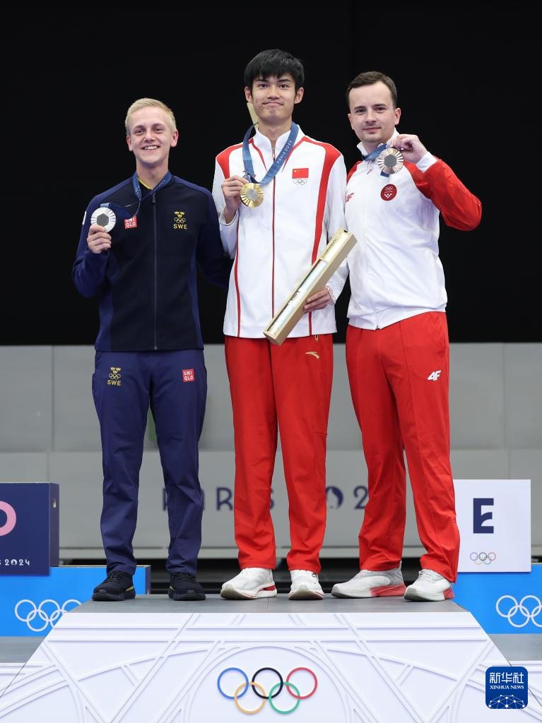 当日,在法国沙托鲁举行的巴黎奥运会射击男子10米气步枪决赛中,中国选手盛李豪获得冠军。