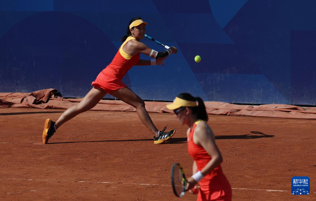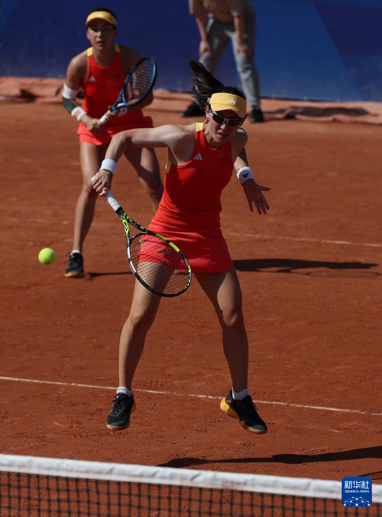 7月29日,中国组合王欣瑜/郑赛赛(前)在比赛中。