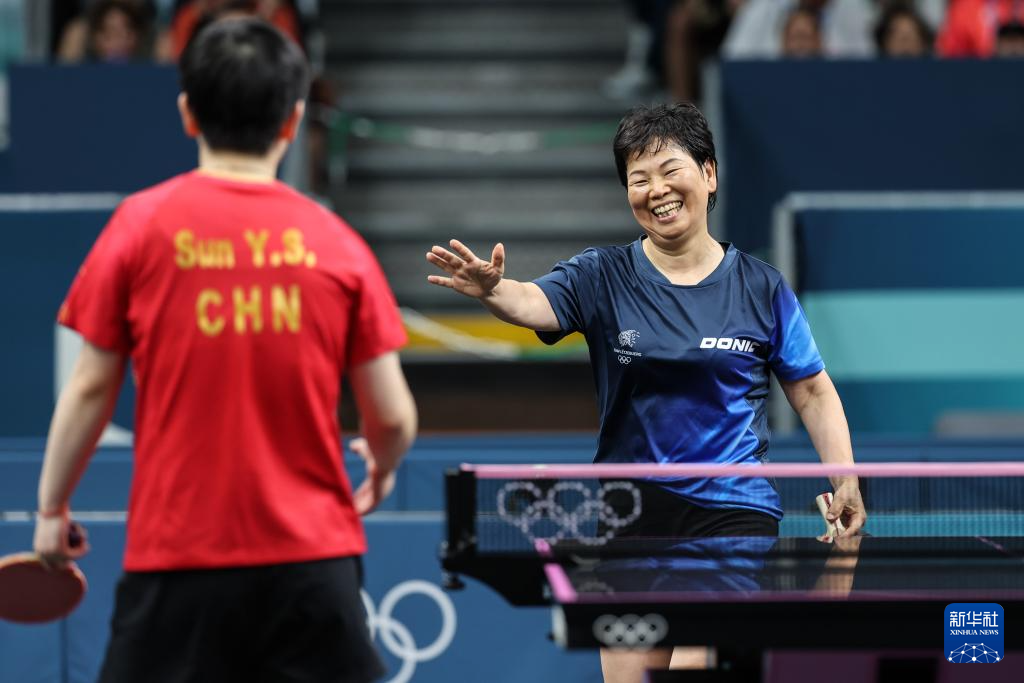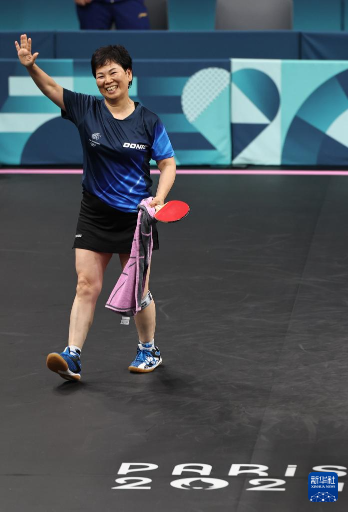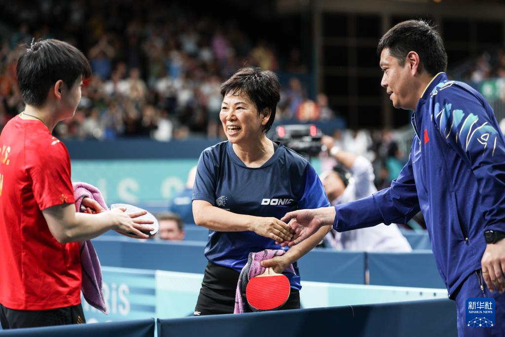 7月31日,倪夏莲(中)赛后和中国队教练员握手。新华社记者 朱峥 摄