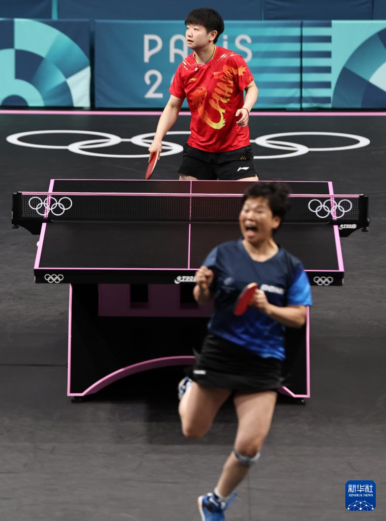 7月31日,孙颖莎(上)和倪夏莲在比赛中。新华社记者 王东震 摄