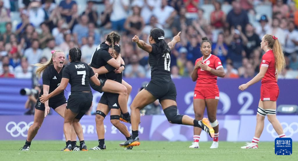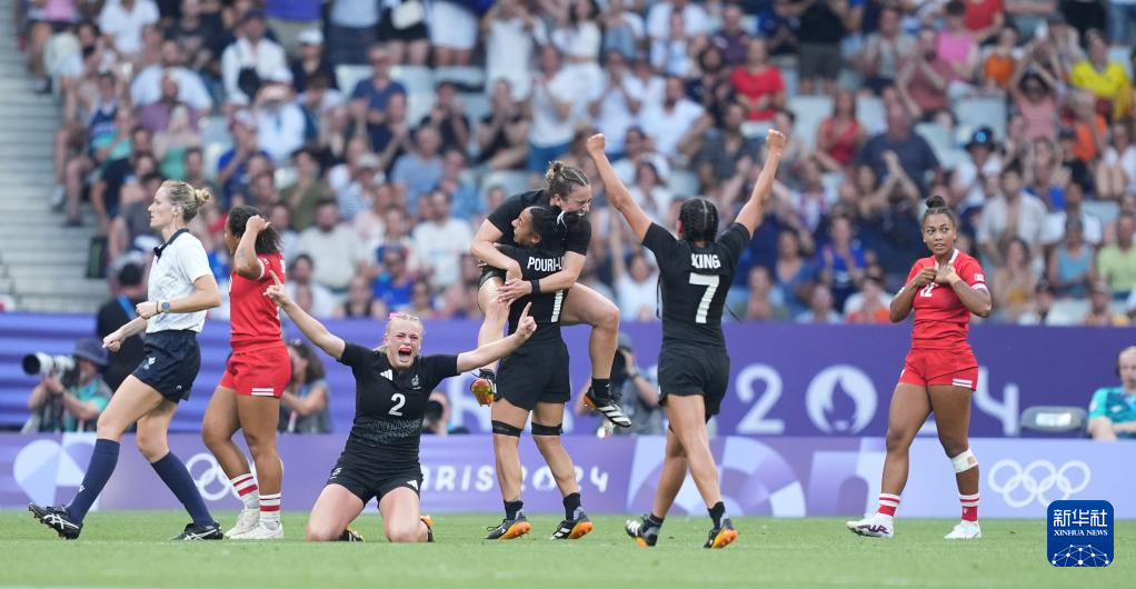 当日,在巴黎奥运会七人制橄榄球女子决赛中,新西兰队19比12战胜加拿大队,夺得冠军。