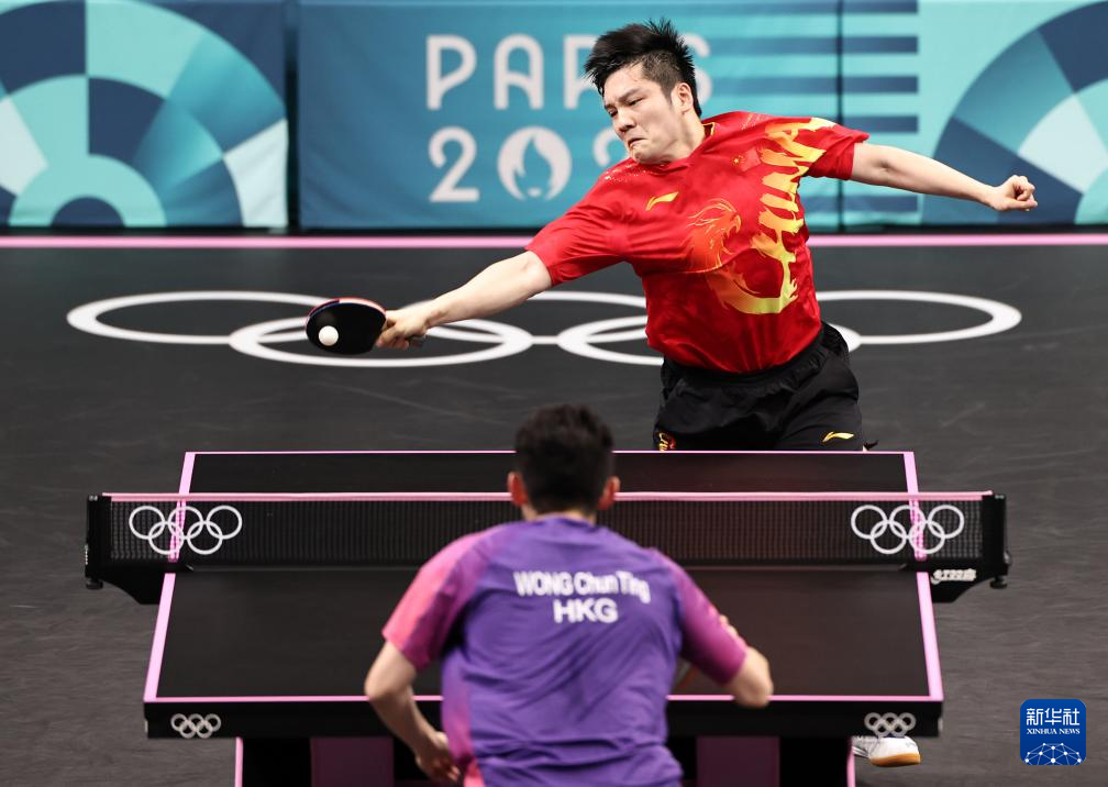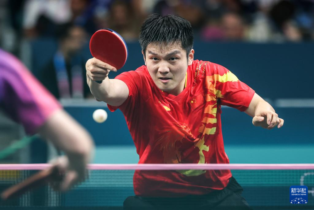 7月31日,樊振东在比赛中回球。新华社记者 徐子鉴 摄