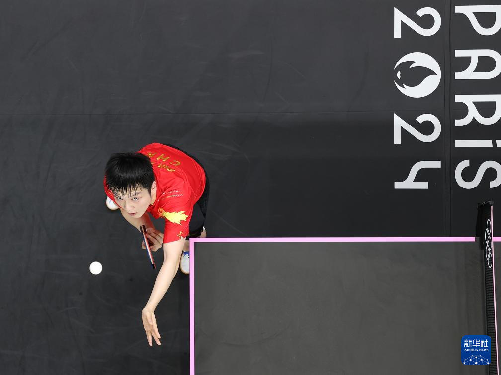 7月31日,樊振东在比赛中发球。新华社记者 徐子鉴 摄