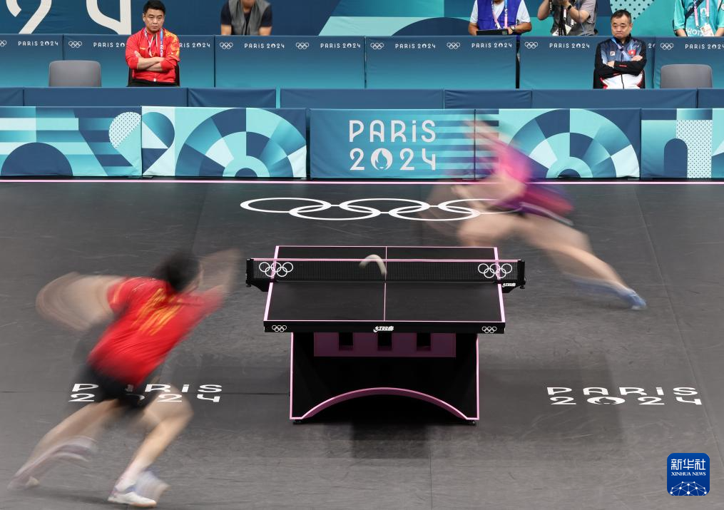 7月31日,樊振东(下)和黄镇廷在比赛中。新华社记者 王东震 摄