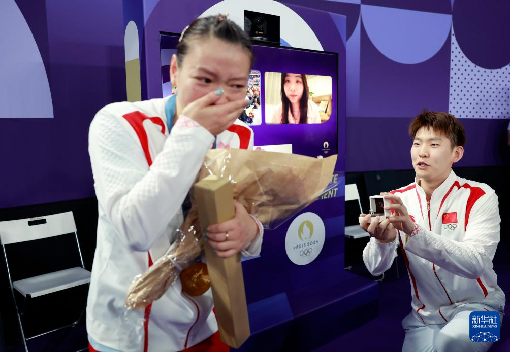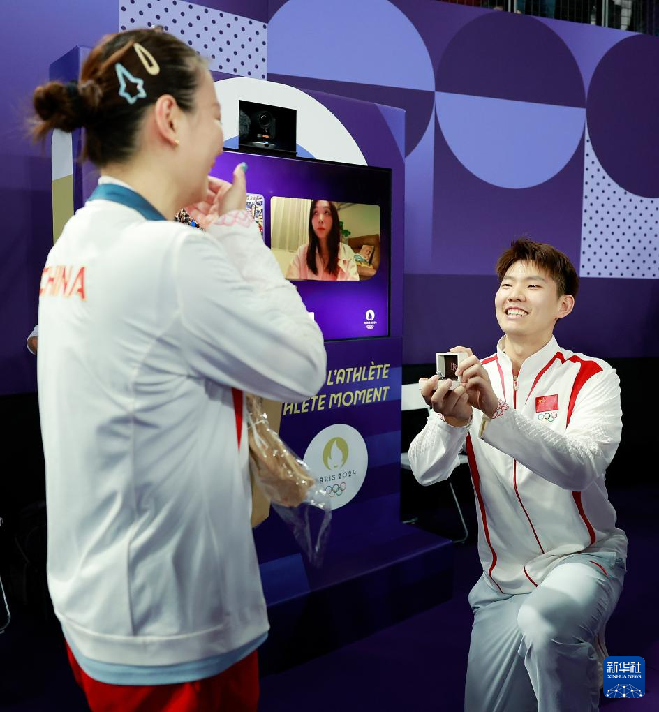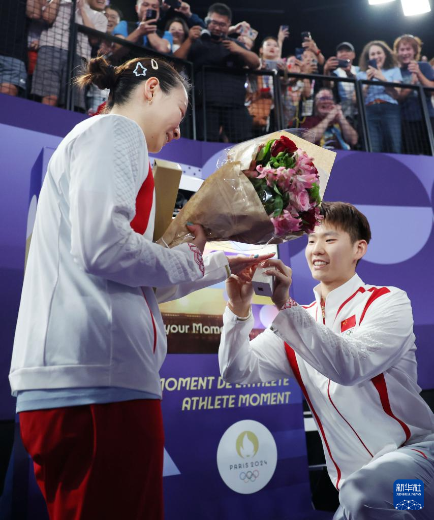 当日,在巴黎奥运会羽毛球混合双打决赛中,中国组合郑思维/黄雅琼夺得金牌。在颁奖仪式后,中国羽毛球运动员刘雨辰在赛场上向黄雅琼求婚。