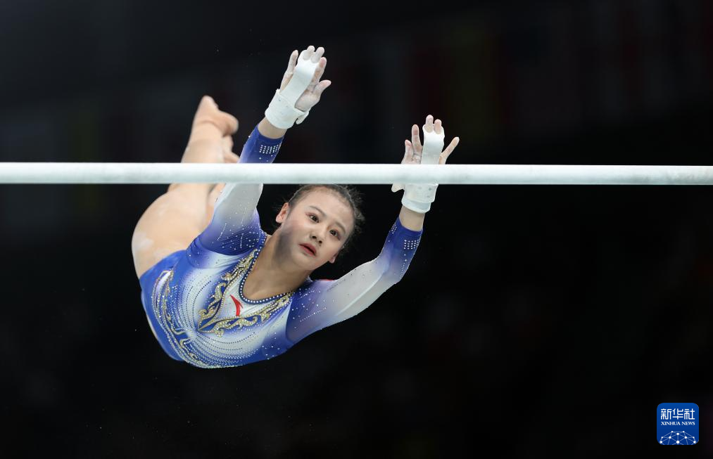 8月1日,中国选手邱祺缘在高低杠比赛中。新华社记者 程敏 摄