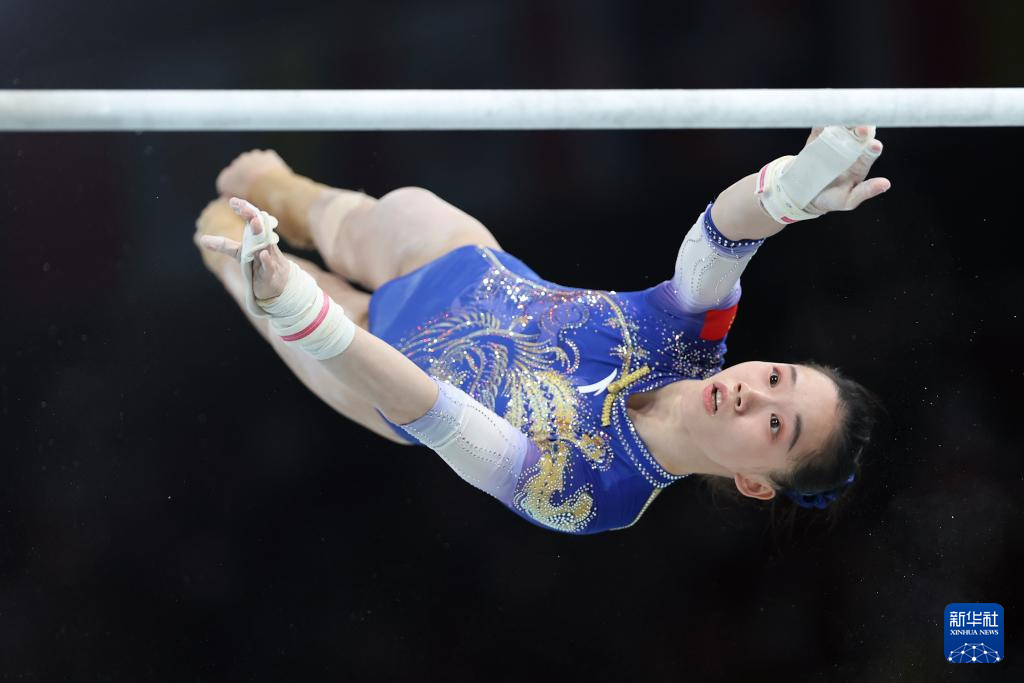 8月1日,中国选手欧钰珊在高低杠比赛中。新华社记者 曹灿 摄
