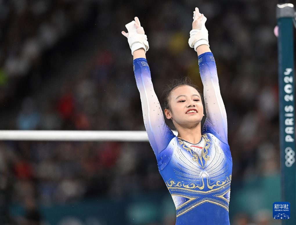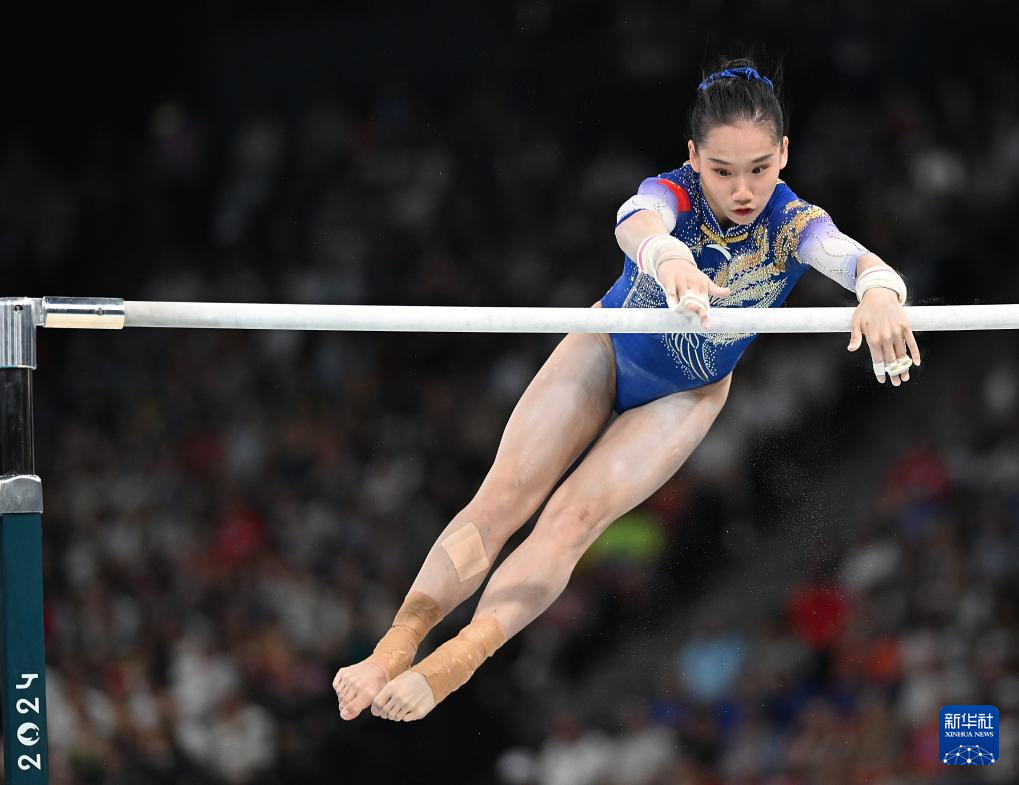 8月1日,中国选手欧钰珊在高低杠比赛中。新华社记者 程敏 摄