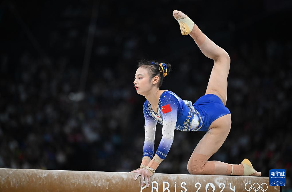 8月1日,中国选手欧钰珊在平衡木比赛中。新华社记者 程敏 摄