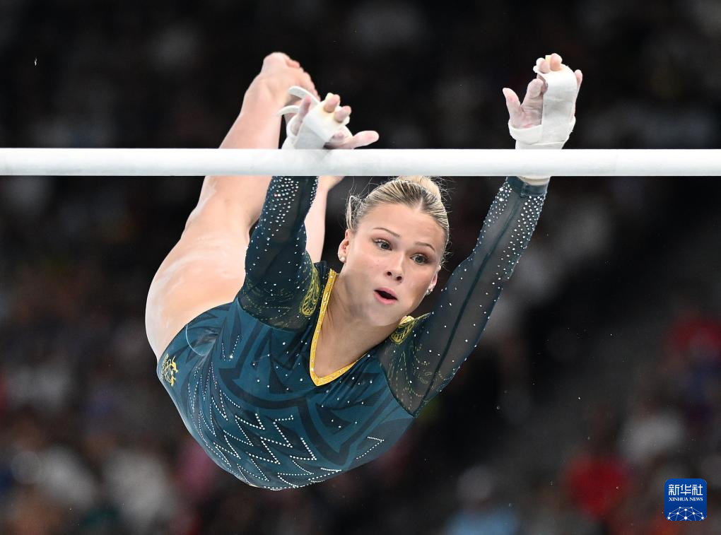 8月1日,澳大利亚选手鲁比·帕斯在高低杠比赛中。新华社记者 程敏 摄