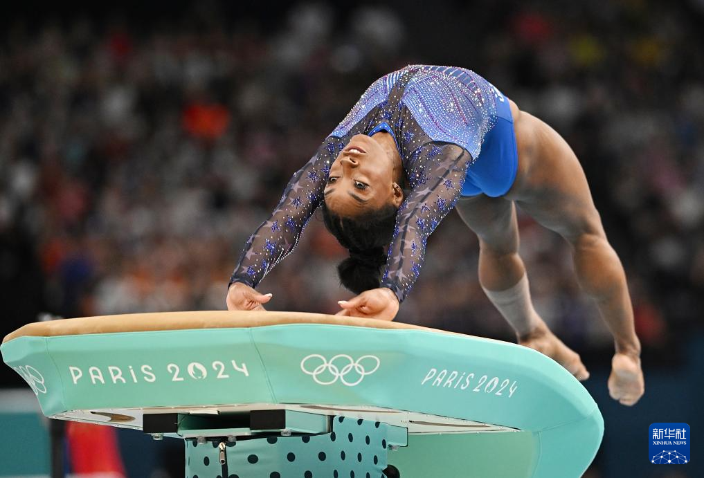 8月1日,美国选手拜尔斯在跳马比赛中。新华社记者 程敏 摄