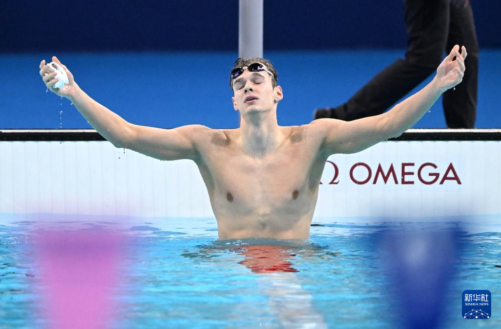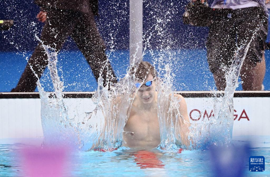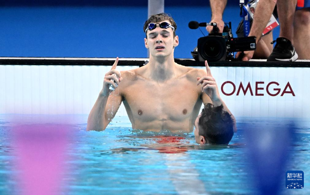 当日,巴黎奥运会游泳项目男子200米仰泳决赛在拉德芳斯体育馆举行。