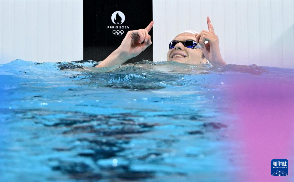 8月1日,匈牙利选手科斯在比赛后庆祝。他获得冠军。新华社记者 夏一方 摄