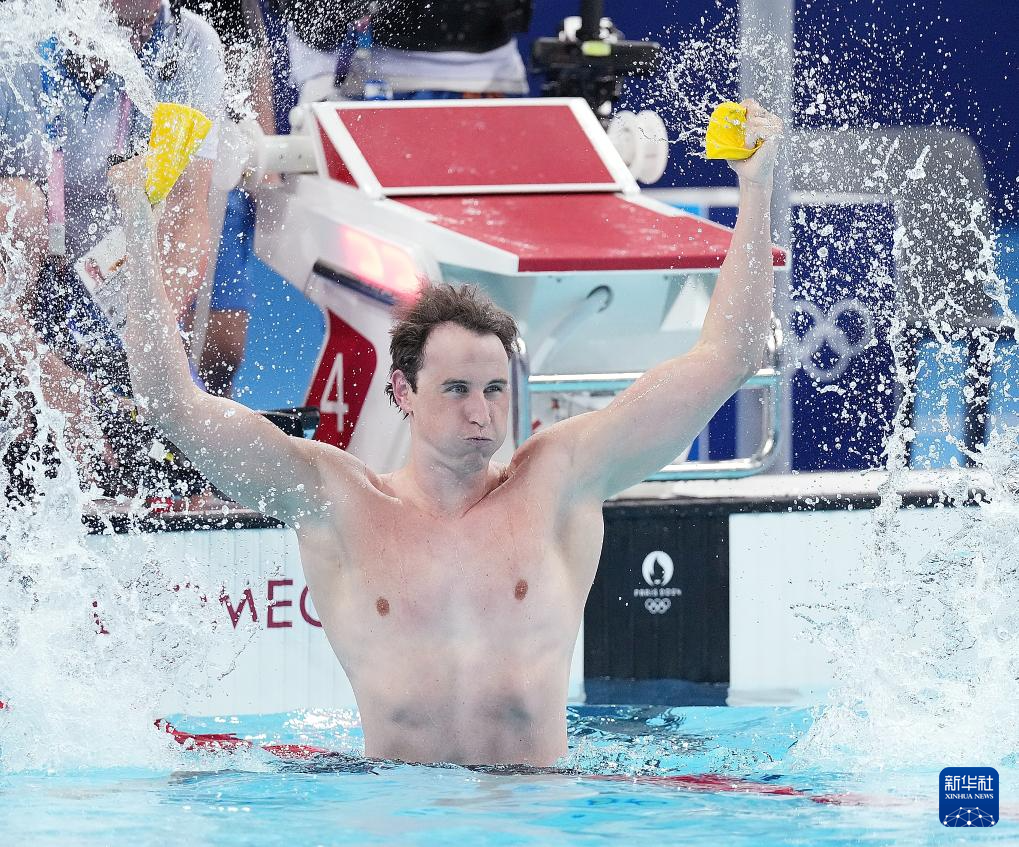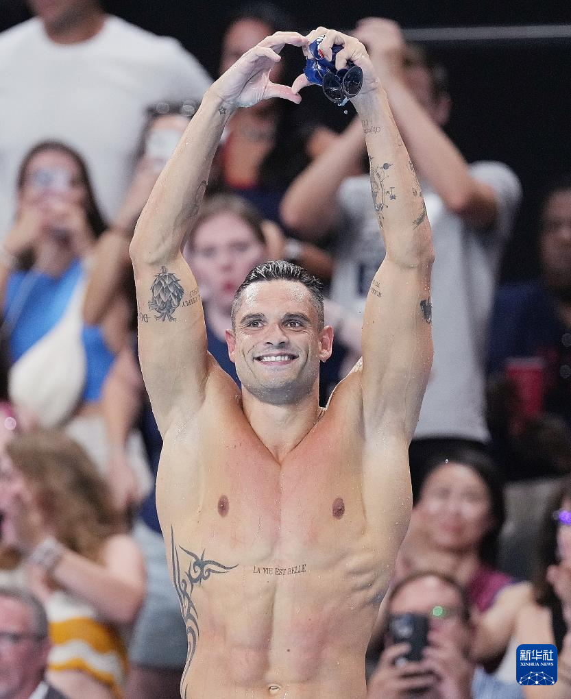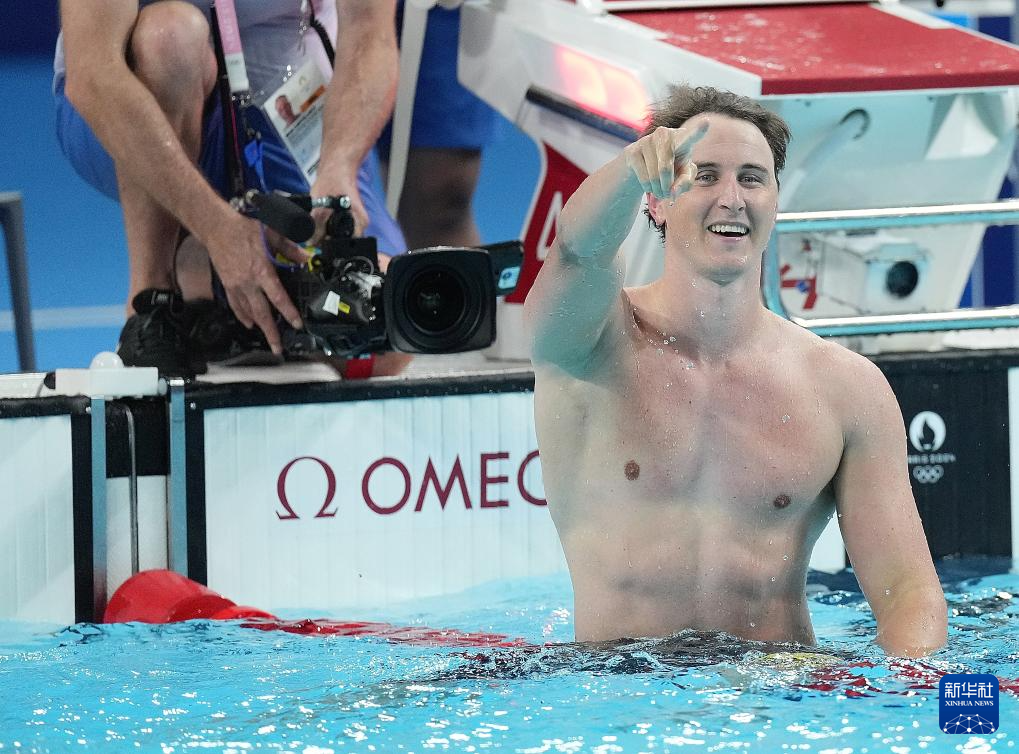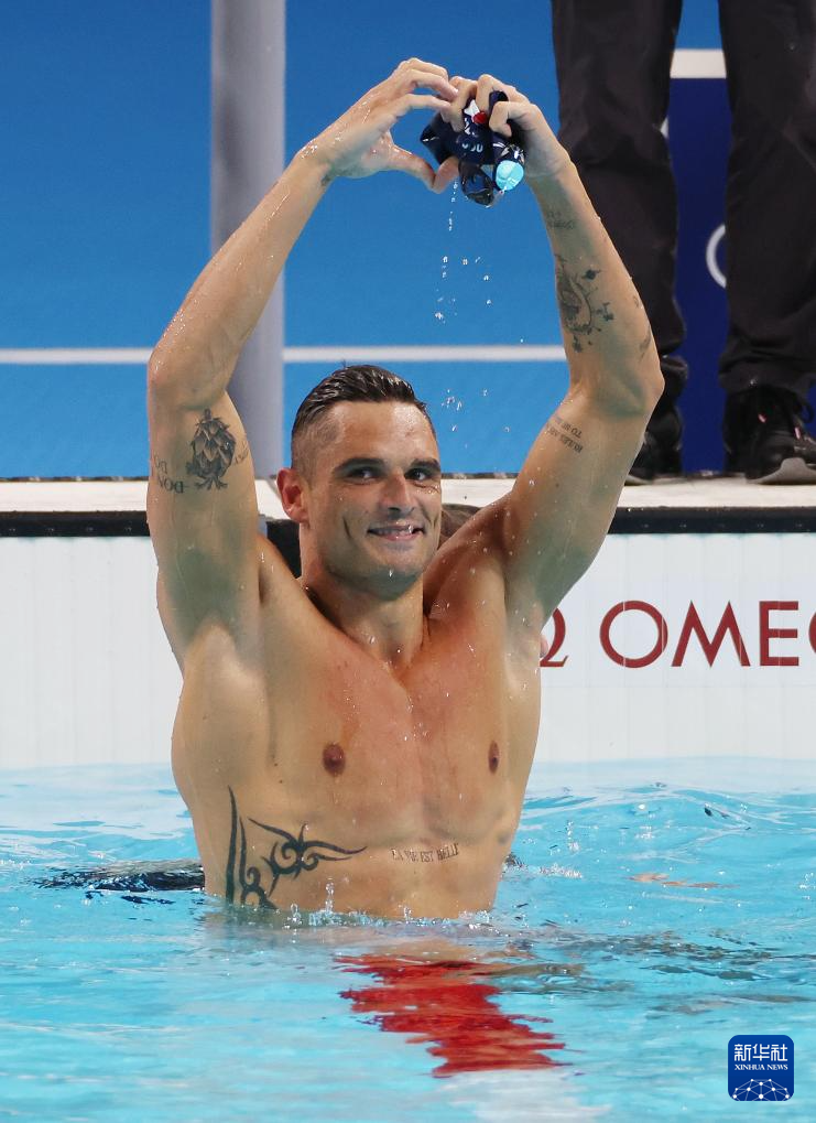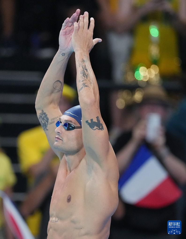当日,巴黎奥运会男子50米自由泳决赛在拉德芳斯体育馆举行。