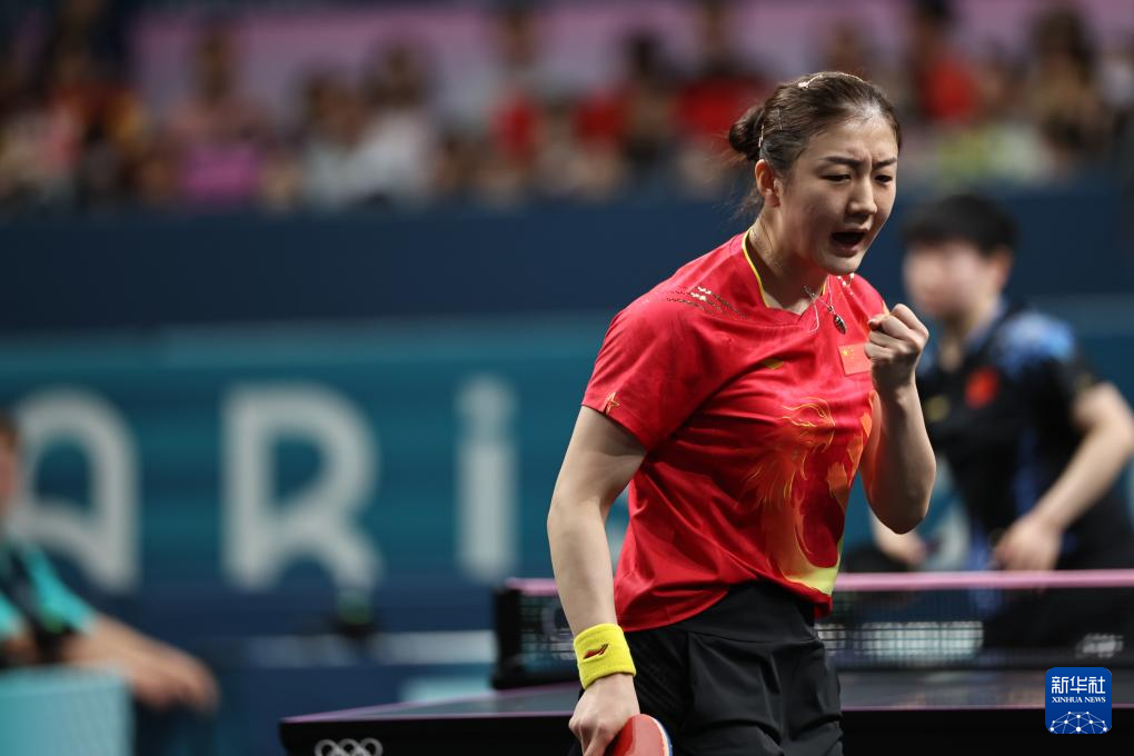 当日,在巴黎奥运会乒乓球女单决赛中,两名中国选手展开角逐。最终,陈梦4比2战胜孙颖莎,夺得金牌。