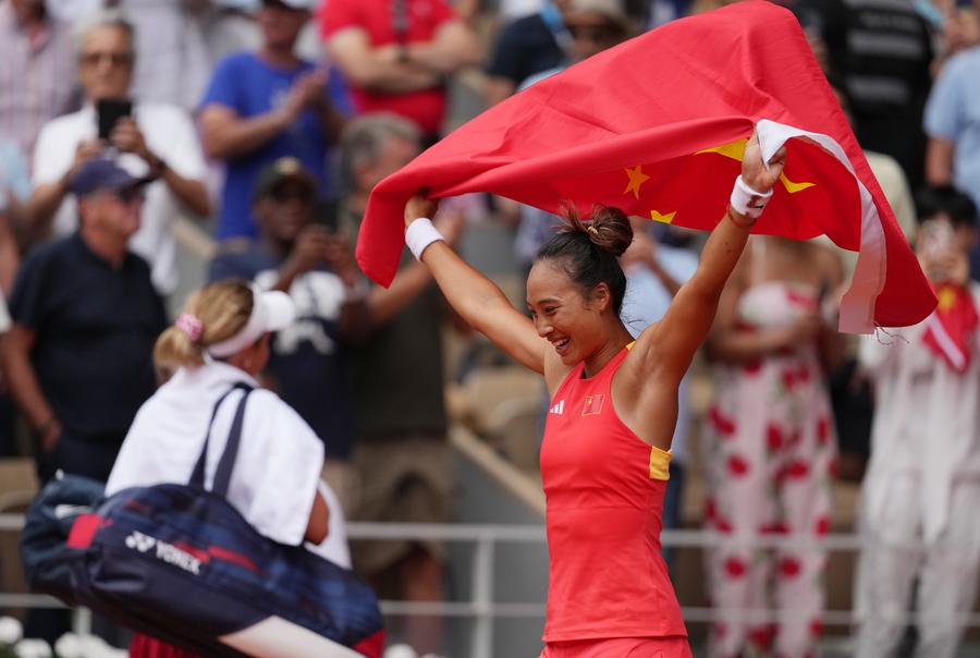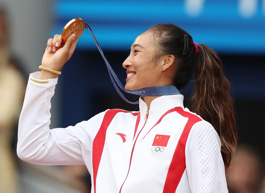 8月3日,郑钦文在颁奖仪式上。新华社记者 高静 摄