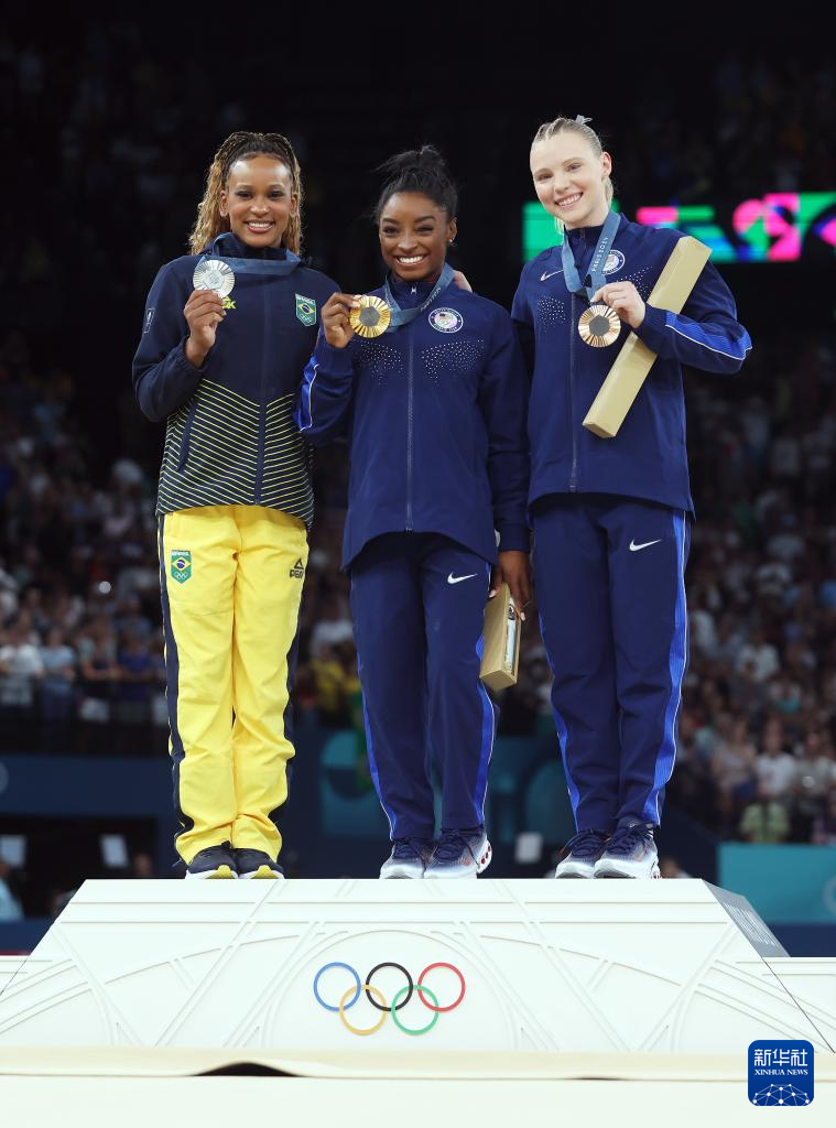 当日,在巴黎奥运会体操项目女子跳马决赛中,美国选手拜尔斯夺得冠军,巴西选手安德拉德与美国选手凯莉分获亚、季军。