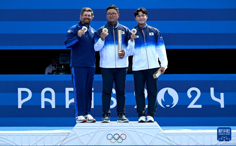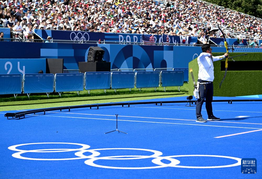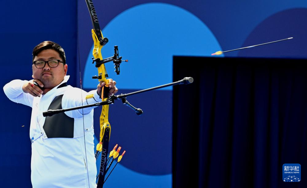 当日,在巴黎奥运会射箭男子个人决赛中,韩国选手金优镇6比5战胜美国选手布雷迪,获得冠军。