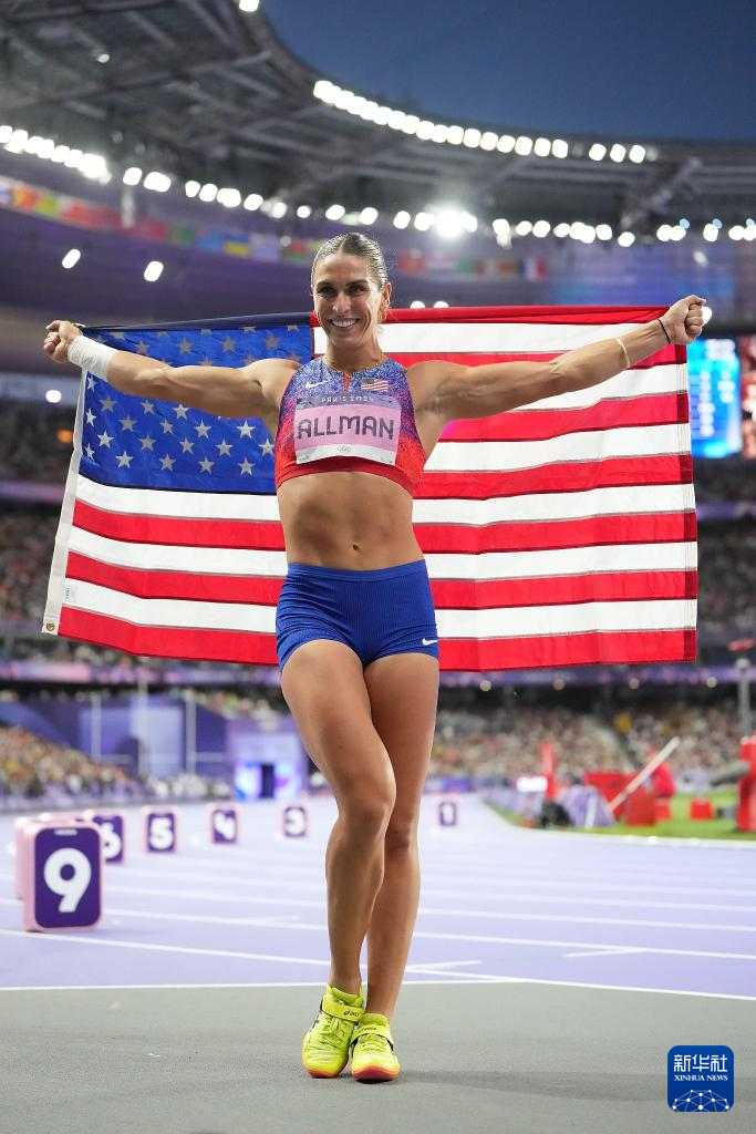 8月5日,冠军美国选手瓦拉丽·奥尔曼在赛后庆祝。