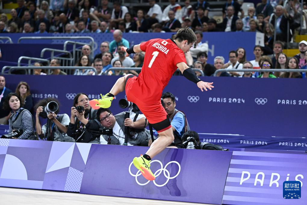 8月5日,日本队选手西田有志在比赛中飞身救球。