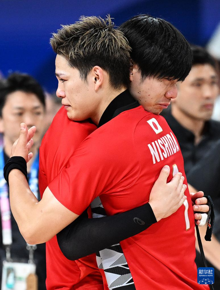 8月5日,日本队球员西田有志(左)比赛后伤心落泪。