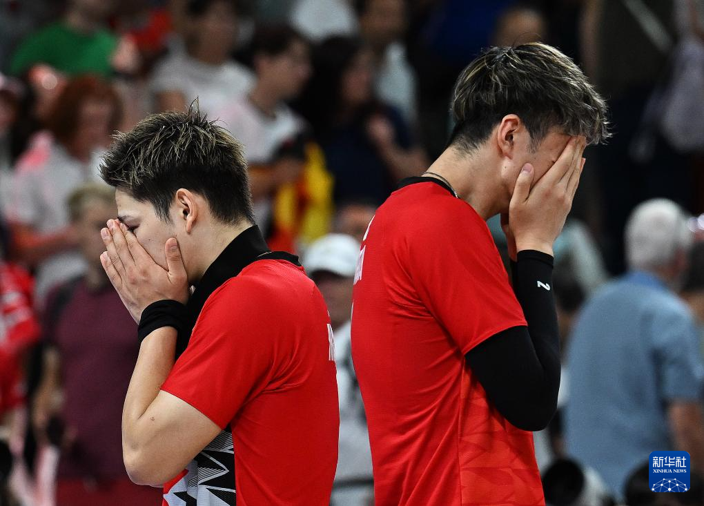 8月5日,日本队球员西田有志(前)比赛后伤心落泪。