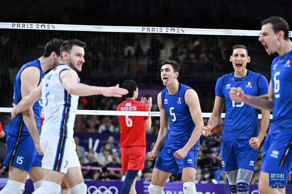 当日,在南巴黎竞技场举行的巴黎奥运会男子排球四分之一决赛中,意大利队3比2战胜日本队,晋级四强。