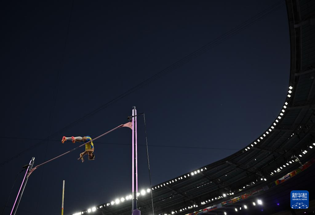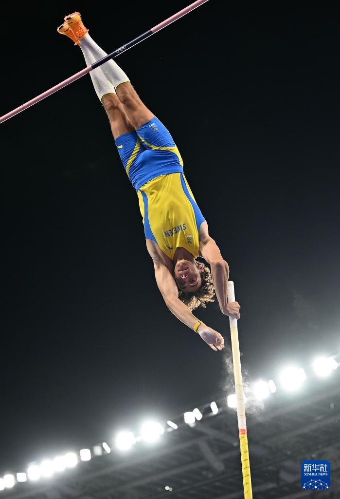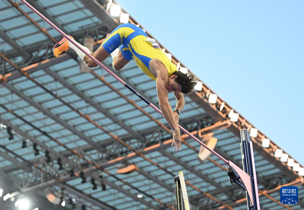 8月5日,瑞典选手杜普兰蒂斯在比赛中越过6米25的高度后。