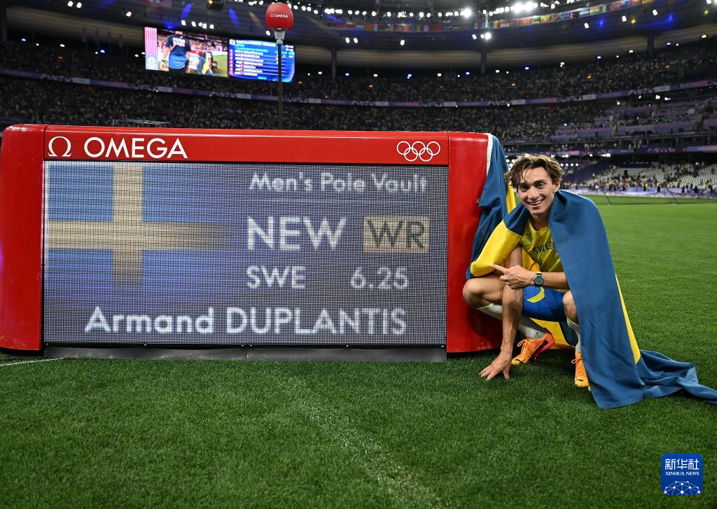 当日,在法兰西体育场举行的巴黎奥运会田径男子撑杆跳高决赛中,瑞典选手杜普兰蒂斯以6米25的成绩夺金,并将自己保持的世界纪录提升了1厘米。