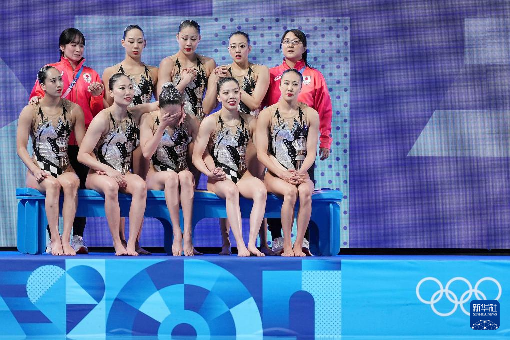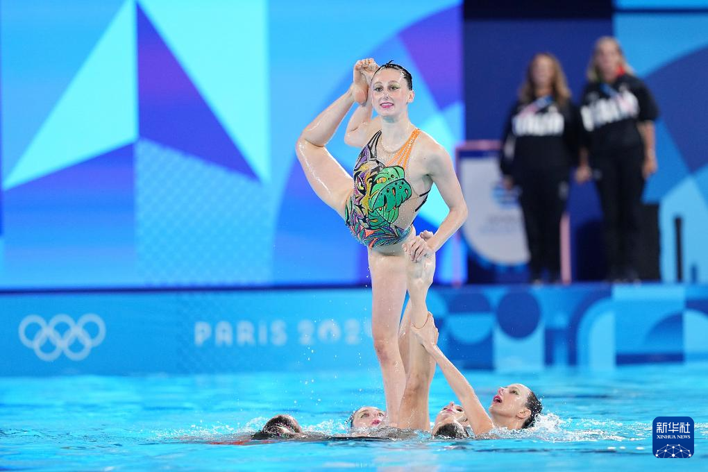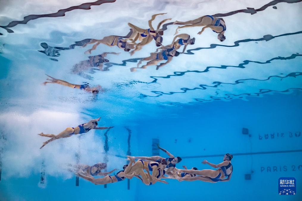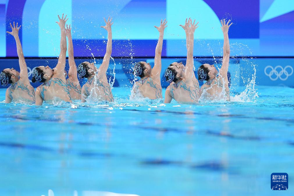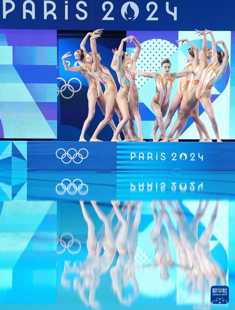 当日,巴黎奥运会花样游泳集体自由自选比赛在巴黎奥林匹克水上运动中心举行。