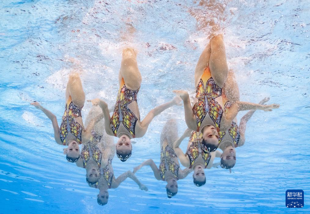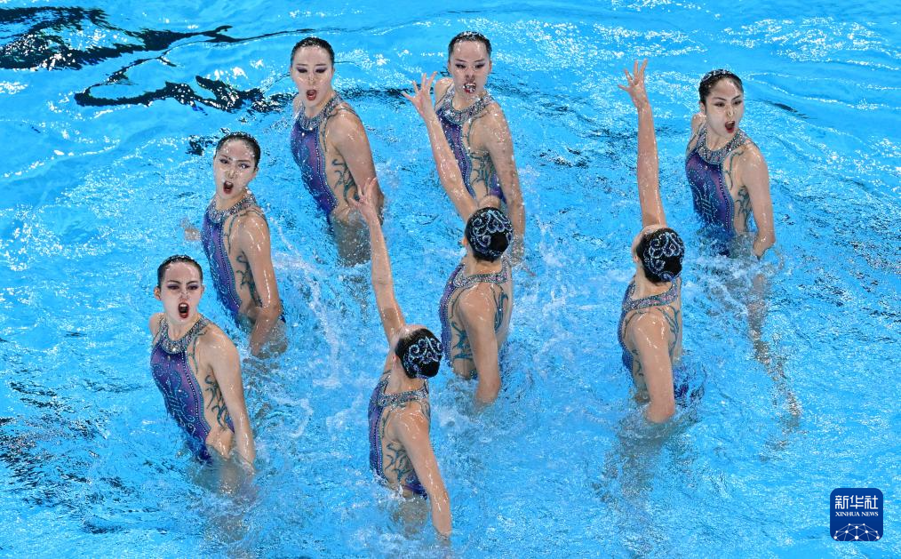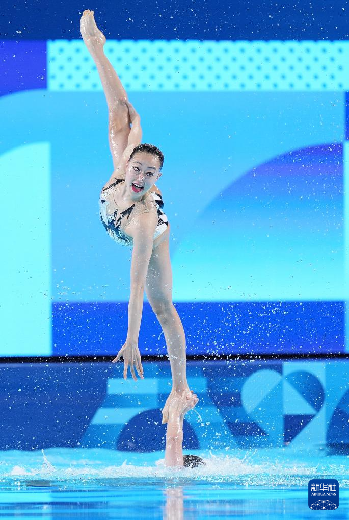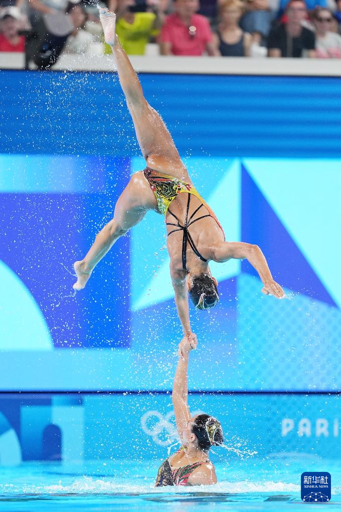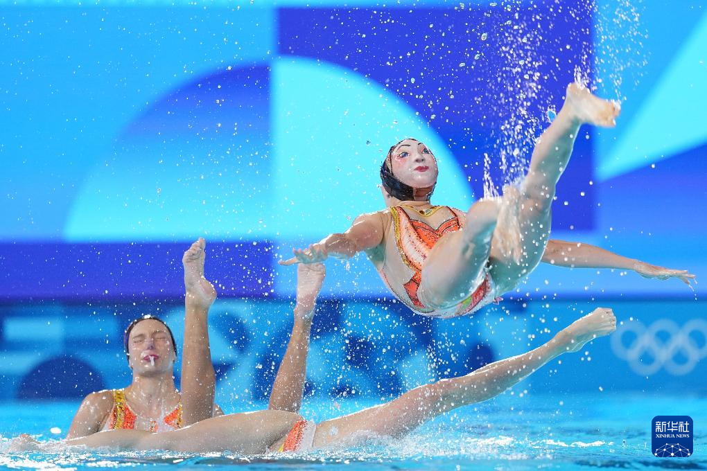 当日,巴黎奥运会花样游泳集体自由自选比赛在巴黎奥林匹克水上运动中心举行。