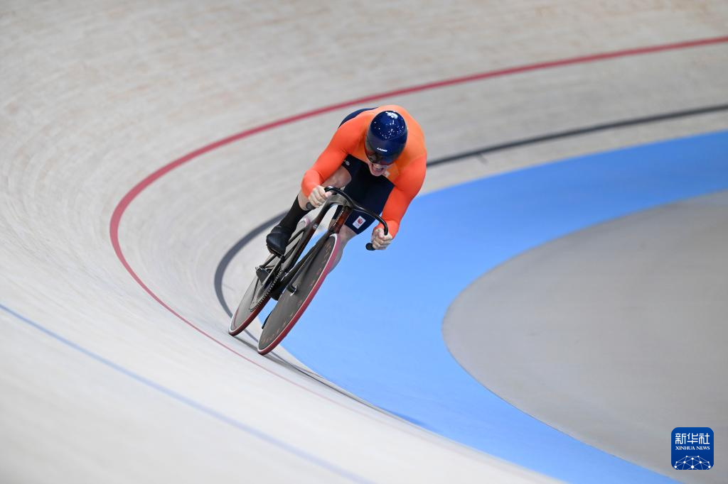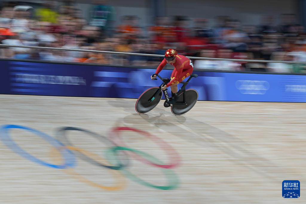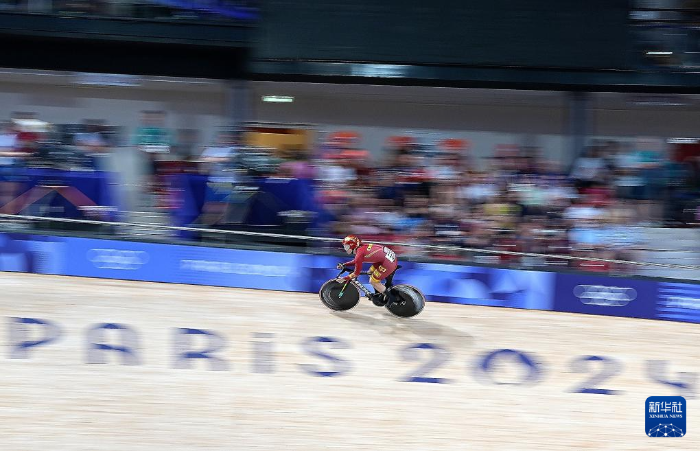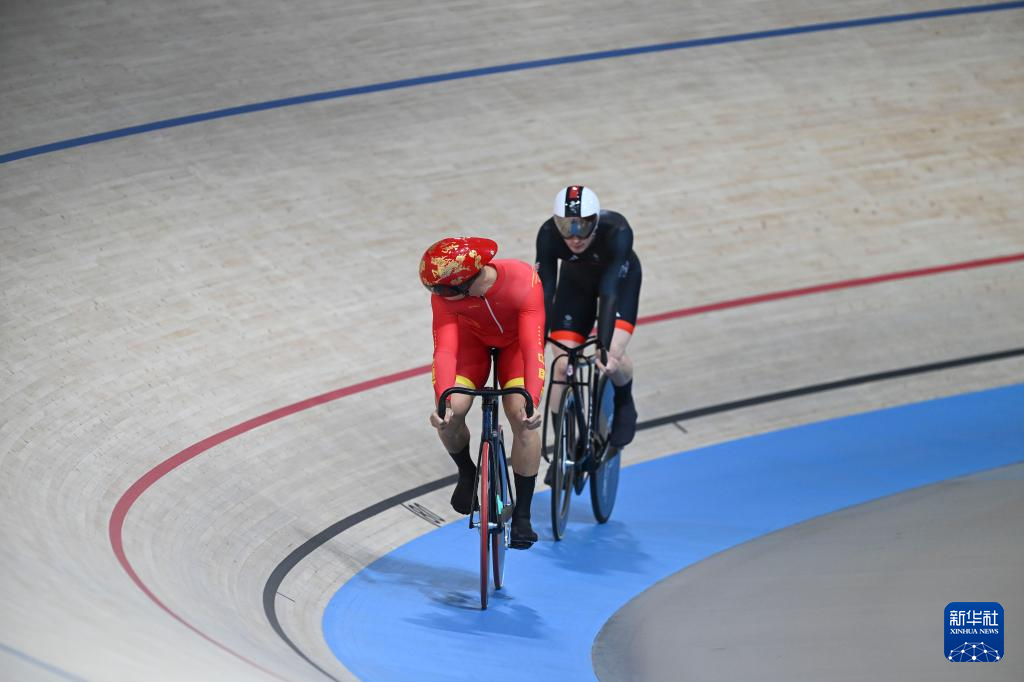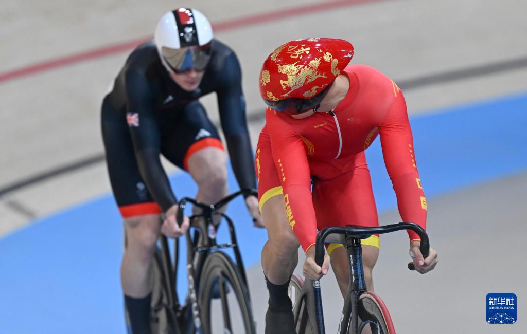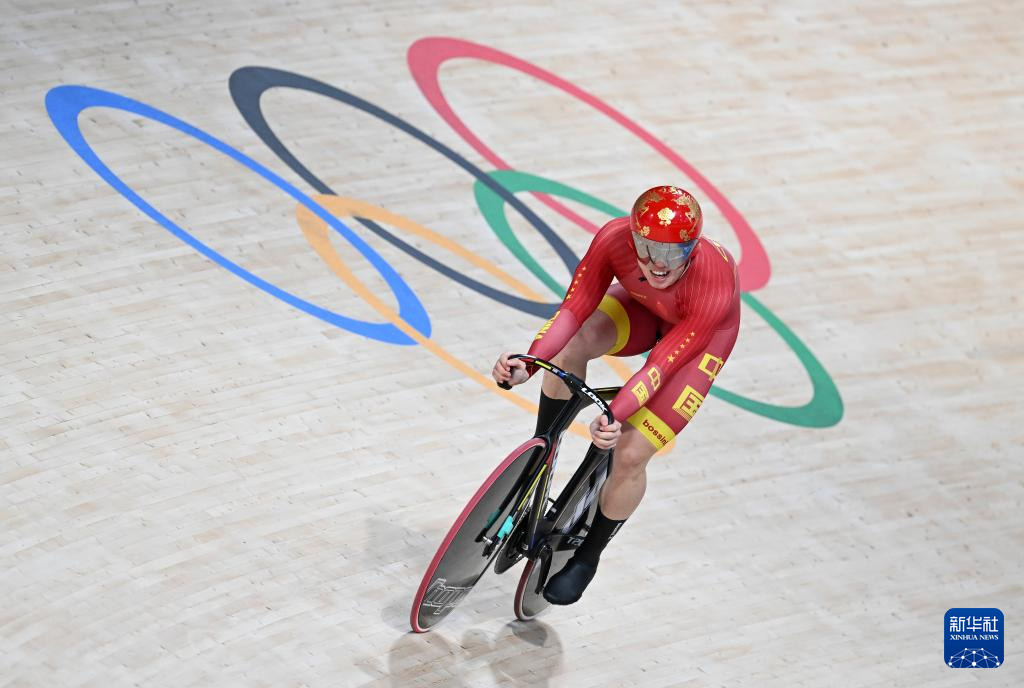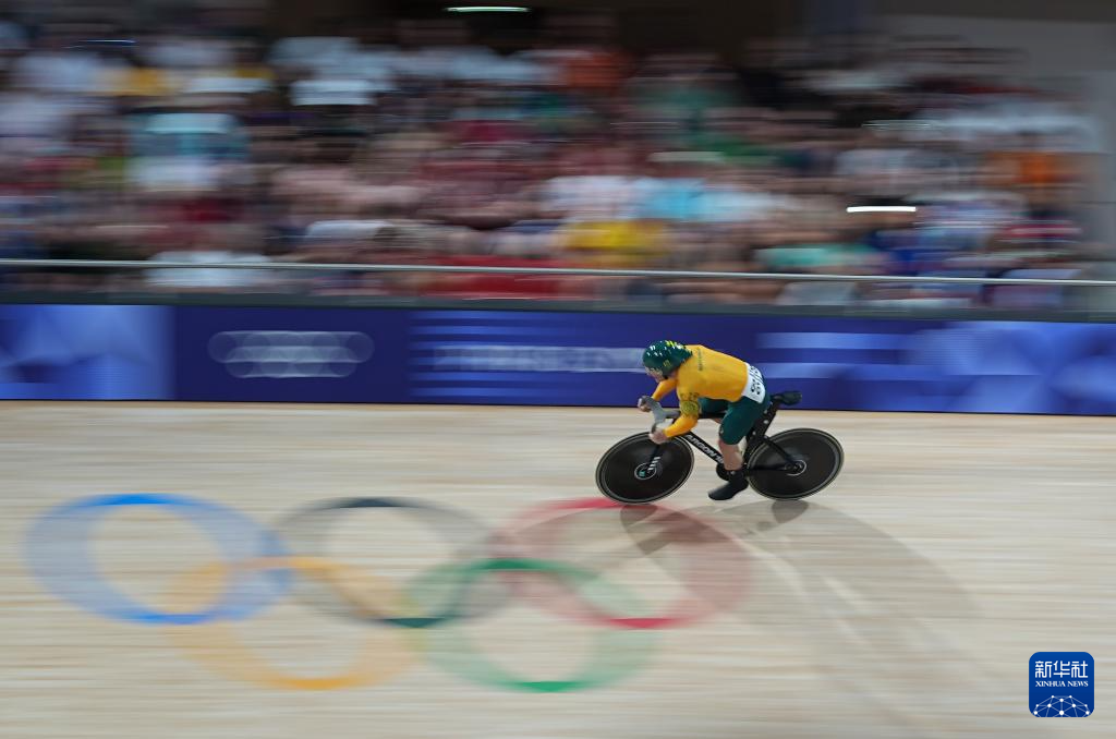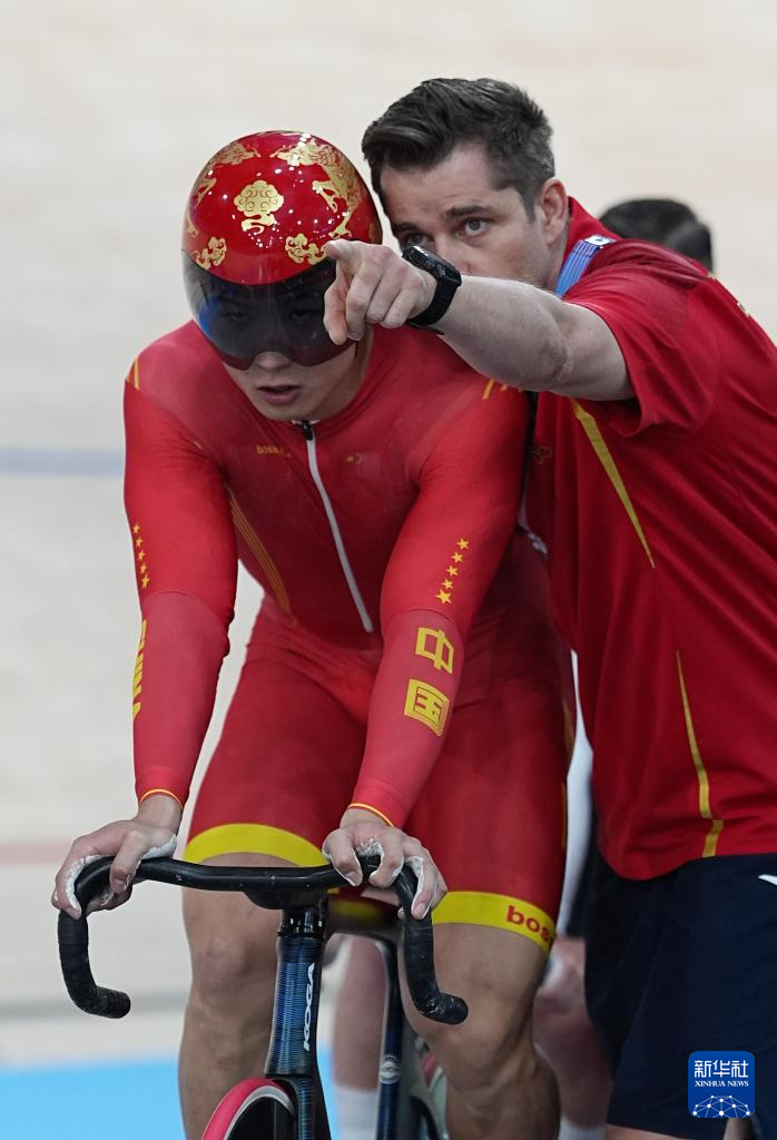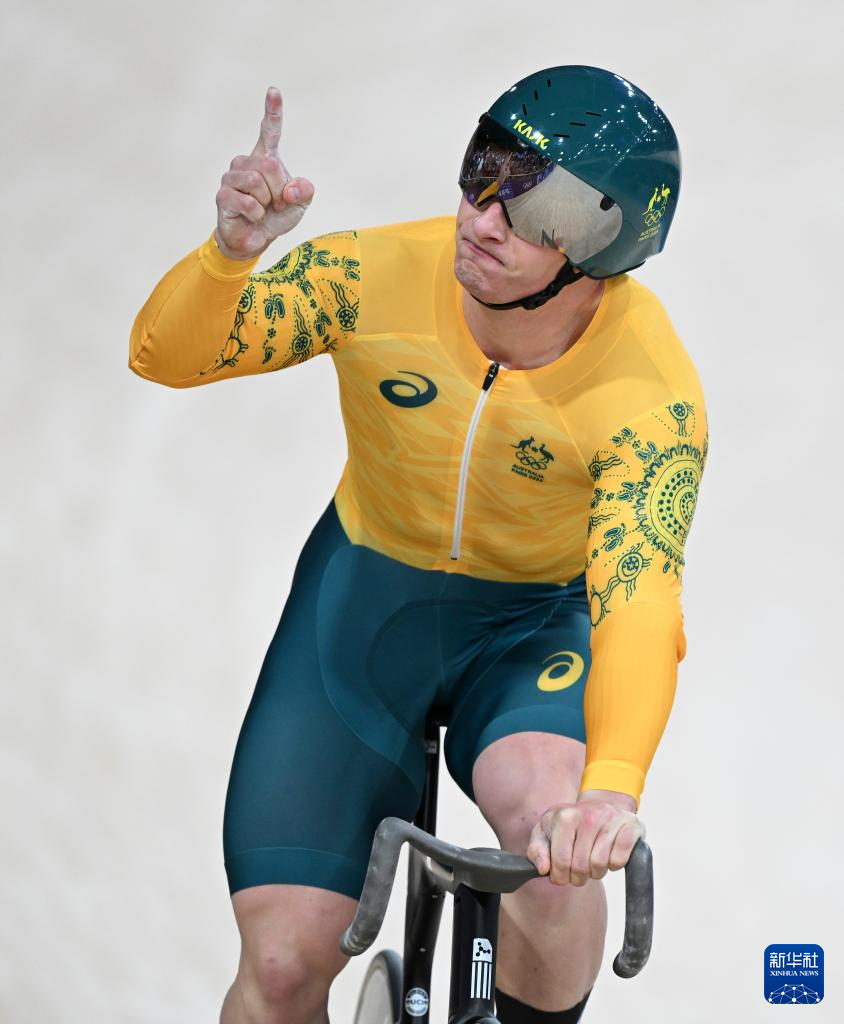 当日,巴黎奥运会场地自行车男子争先赛在圣康丁伊夫林自行车馆举行。