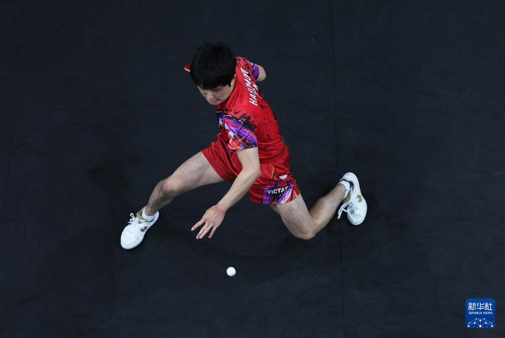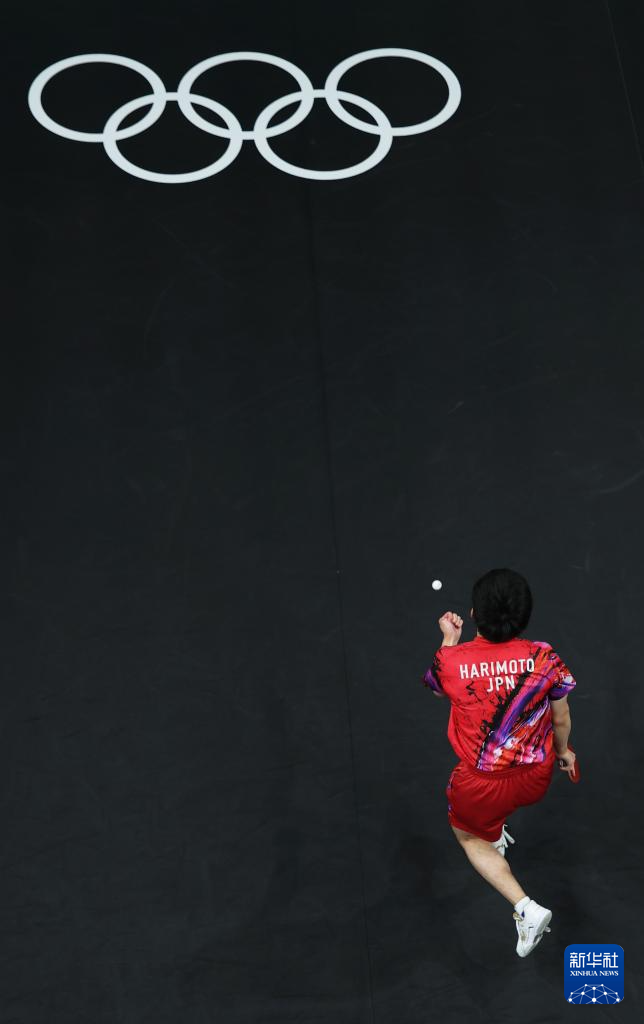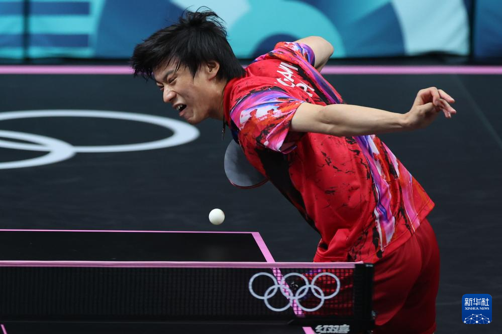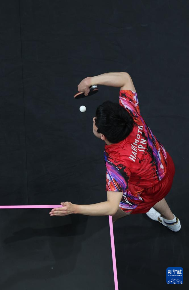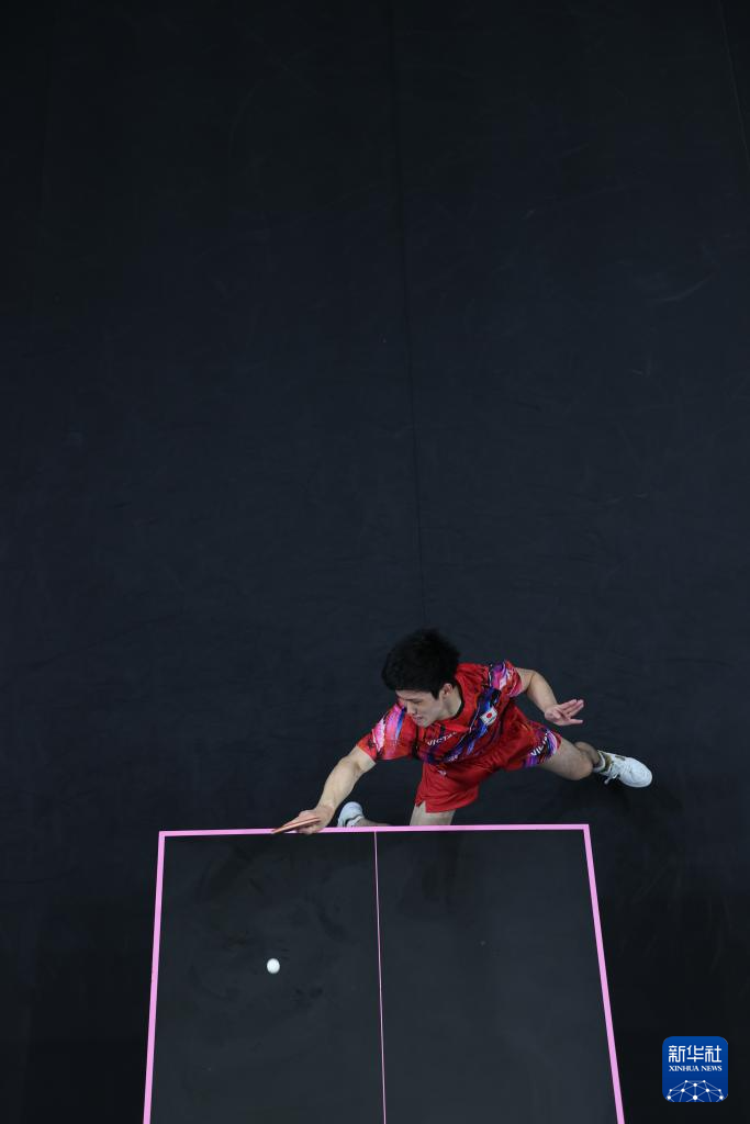 8月9日,日本选手张本智和在与法国选手菲利克斯·勒布伦的比赛中。新华社记者 郭昱 摄