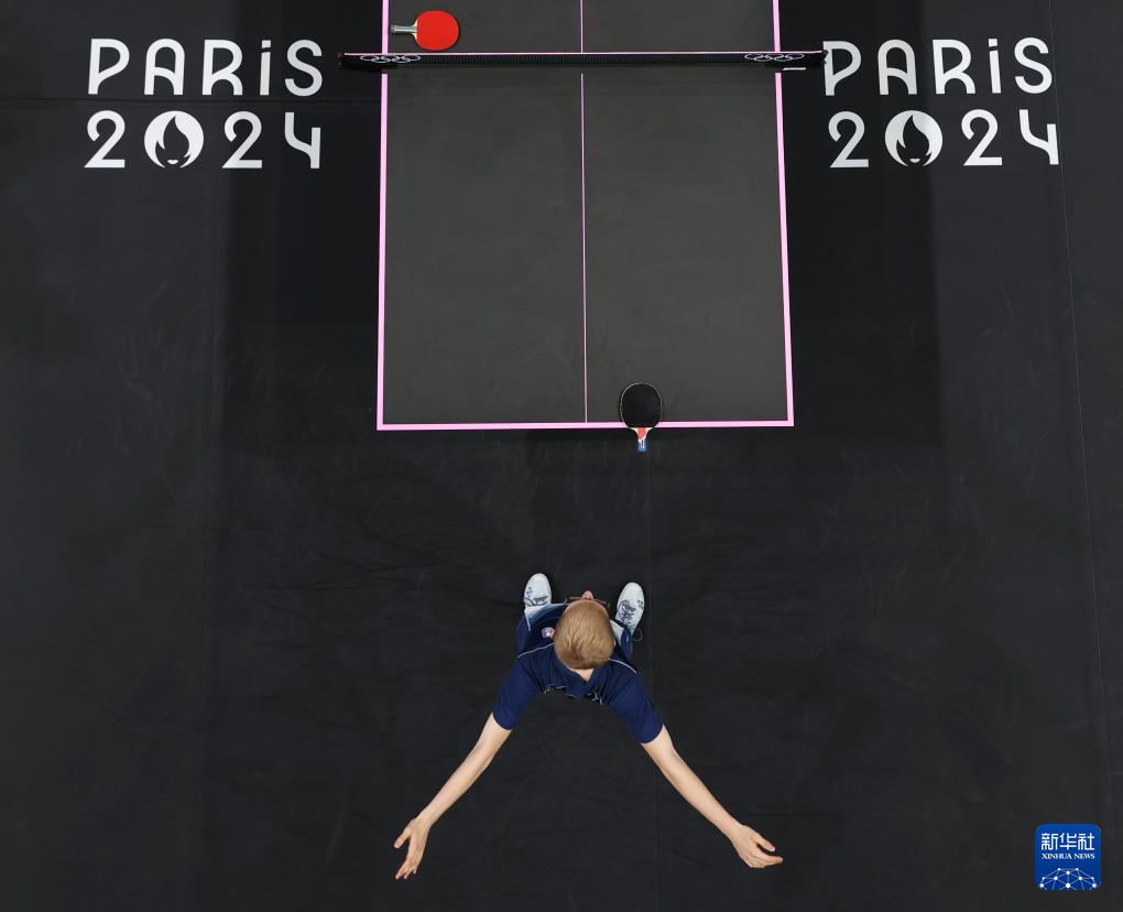 8月9日,法国选手菲利克斯·勒布伦在与日本选手张本智和的比赛前热身。新华社记者 郭昱 摄