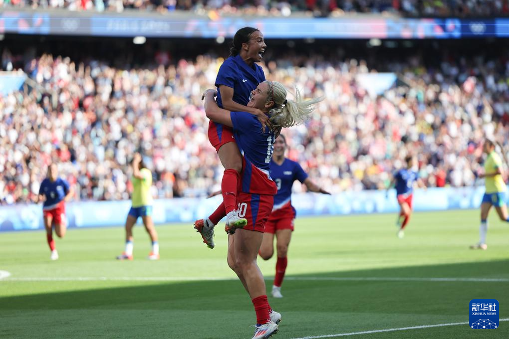 当日,在巴黎奥运会女子足球决赛中,美国队1比0战胜巴西队,夺得冠军。