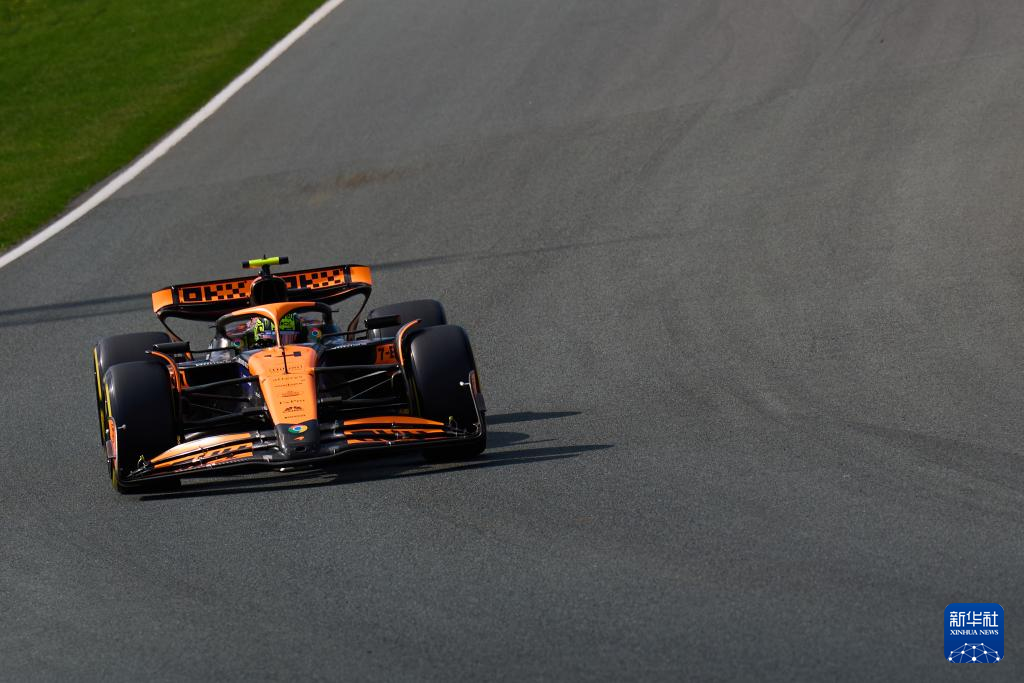 8月25日,迈凯伦车队英国车手诺里斯驾驶赛车在比赛中。新华社记者 孟鼎博 摄