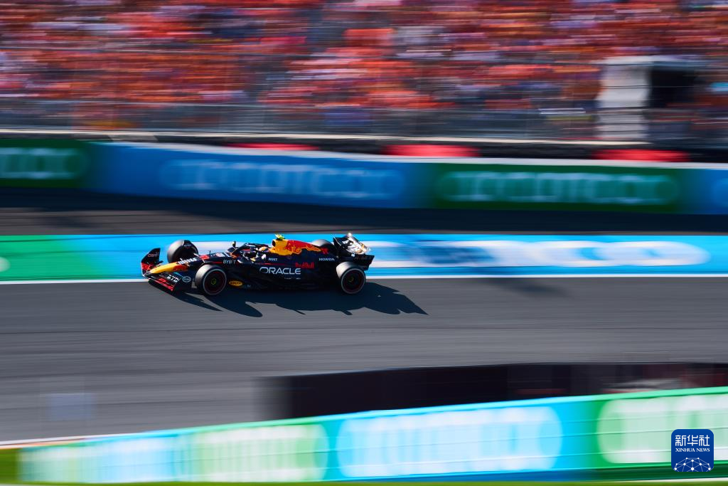 8月25日,红牛车队墨西哥车手佩雷兹驾驶赛车在比赛中。最终,佩雷兹位列第六名。新华社记者 孟鼎博 摄