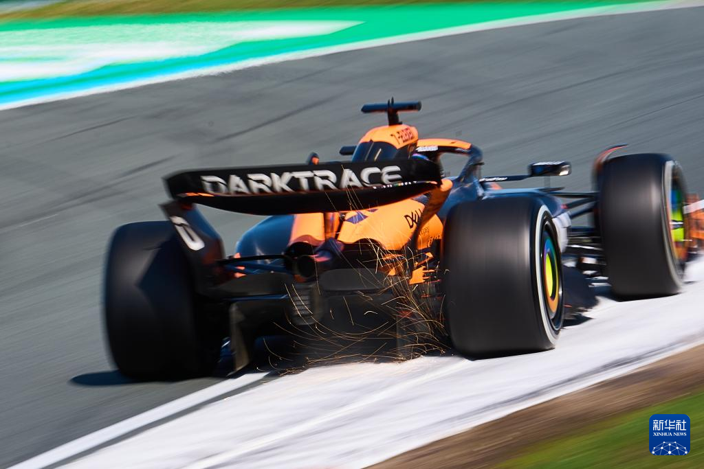 8月25日,迈凯伦车队澳大利亚车手皮亚斯特里驾驶赛车在比赛中。最终,皮亚斯特里位列第四名。新华社记者 孟鼎博 摄