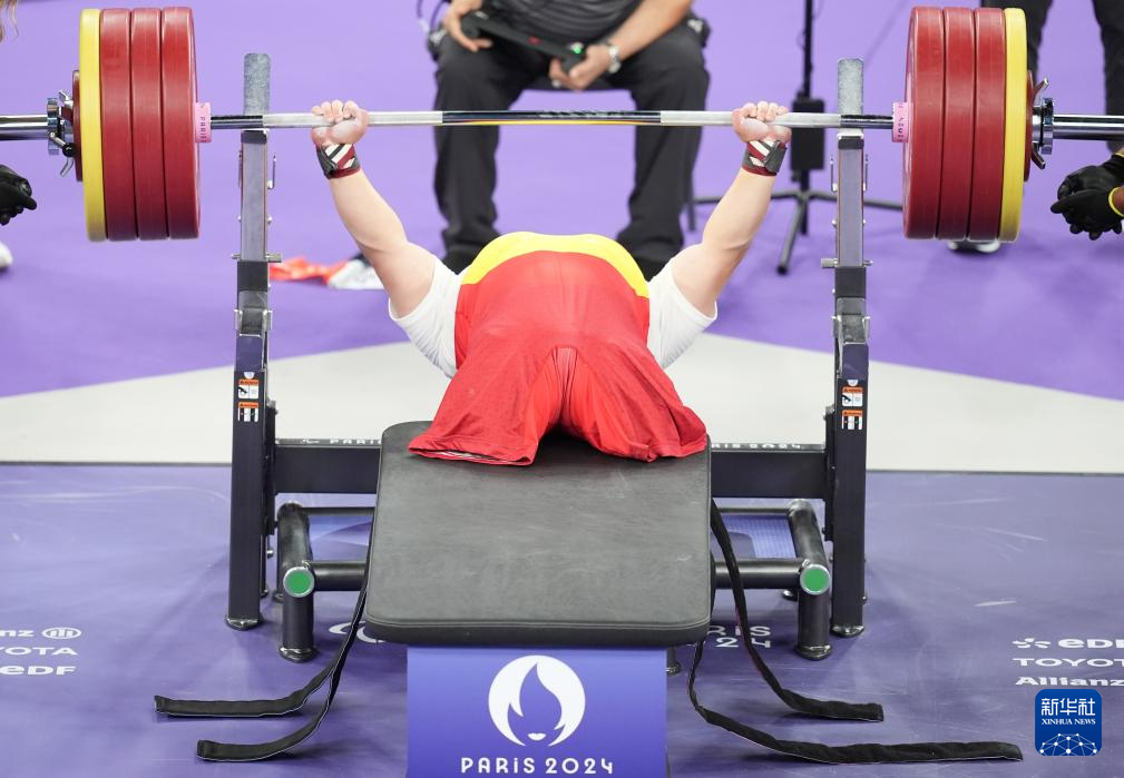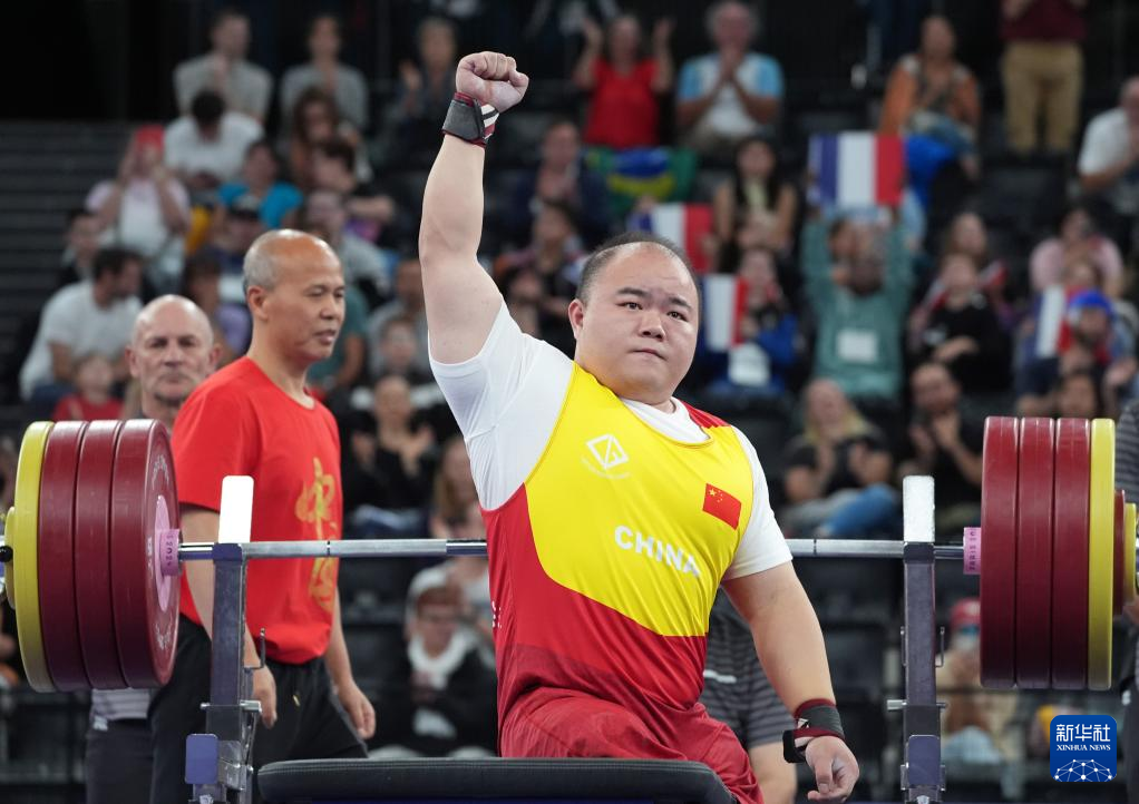 当日,巴黎残奥会举重项目男子65公斤级比赛在拉夏贝尔门体育馆举行,中国选手邹益夺得冠军。