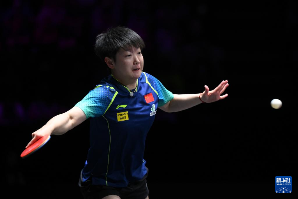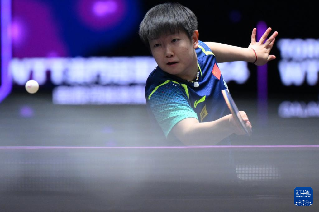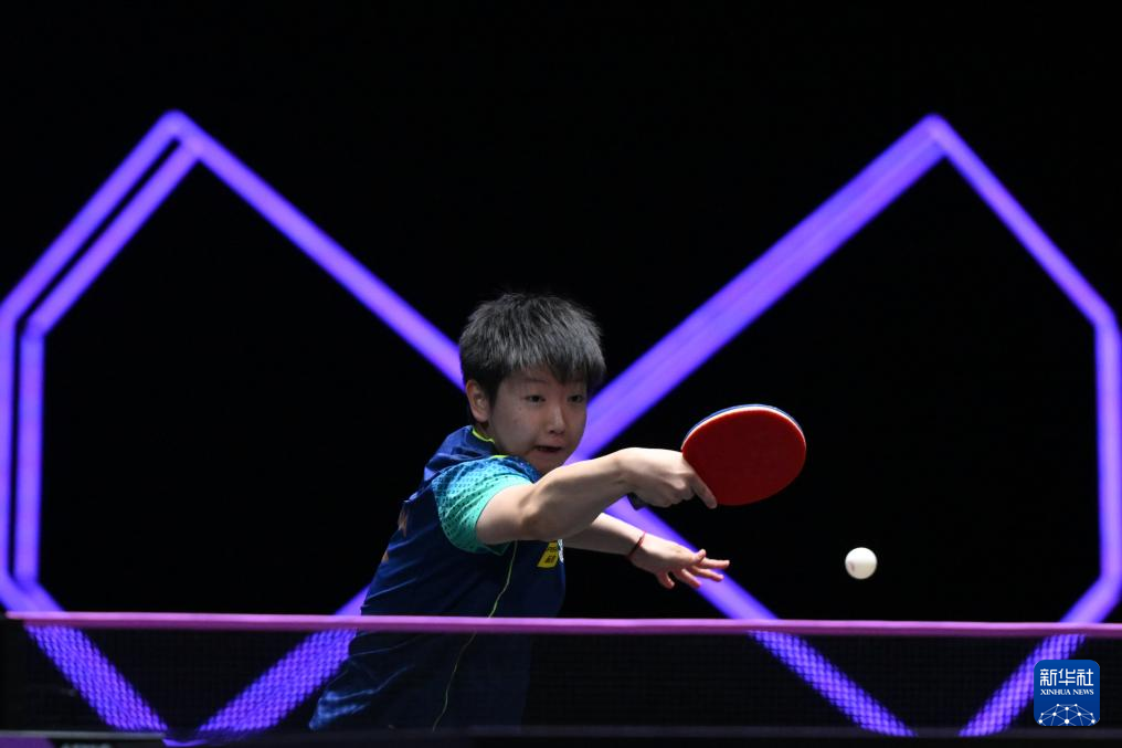 9月9日,孙颖莎在比赛中回球。新华社记者 张金加 摄